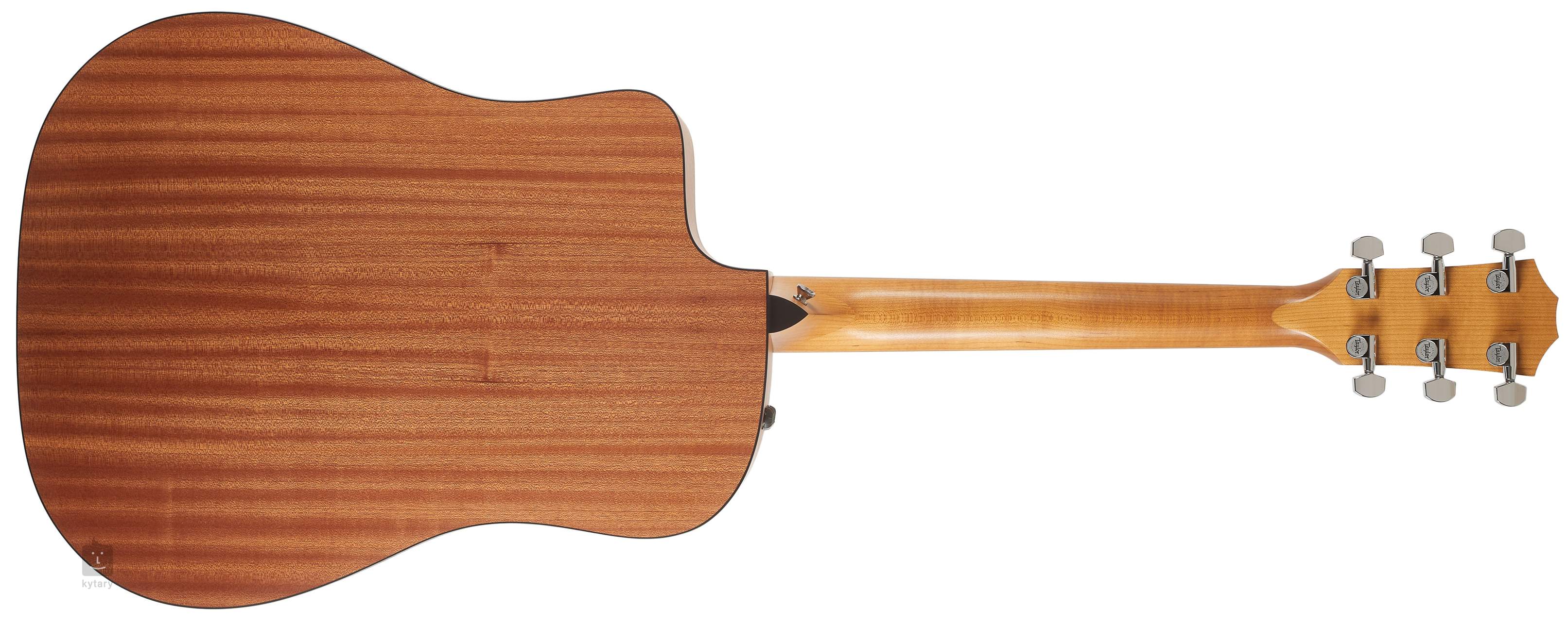Elektroakustická gitara Taylor 110ce-S má veľké, rezonančné telo typu Dreadnought. Predná doska je vyrobená z masívneho smreku Sitka, zatiaľ čo zadná doska a bočnice sú vyrobené z laminovaného sapele. Javorový krk má ebenový hmatník s dvadsiatimi pražcami a imitáciou perleťových značiek polohy. Jemný zaoblený spodný výrez (Venetian Cutaway) uľahčuje dosah na vyššie pražce. Struny sú ukotvené v chrómových liatinových ladiacich mechanikách Taylor prostredníctvom mikartového sedla a TusQ matice. Krásne spracovanie podčiarkujú tradičné prvky v podobe trojkrúžkovej rozety, čierneho lemovania tela a praktického čierneho chrániča. Zvuk zachytáva systém Taylor Expression System 2. Ide o úplne jedinečný snímačový systém, ktorý posúva realistickú reprodukciu zvuku na bezprecedentnú úroveň. Na snímanie zvuku sa používajú tri špeciálne navrhnuté nezávislé piezoelektrické snímače umiestnené za mostíkom. Na rozdiel od bežných snímačov nezachytávajú pohyb rezonančnej dosky nahor a nadol, ale prirodzené vibrácie mostíka dopredu a dozadu. Vďaka tomu je zvuk oveľa prirodzenejší, farebnejší a príjemnejší a lepšie reaguje na dynamiku vašej hry. Zároveň je vďaka novému predzosilňovaču signál o 25 % silnejší. Eliminácia spätnej väzby a možnosť nastavenia hlasitosti, basov a výšok sú samozrejmosťou. Nástroj sa dodáva v puzdre. Nástroje série 100 sa vyrábajú v továrni v mexickom meste Tecate, čo však nijako neznižuje ich kvalitu. Tecate je len niekoľko desiatok kilometrov od kalifornského El Cajonu, takže výroba je riadne monitorovaná.