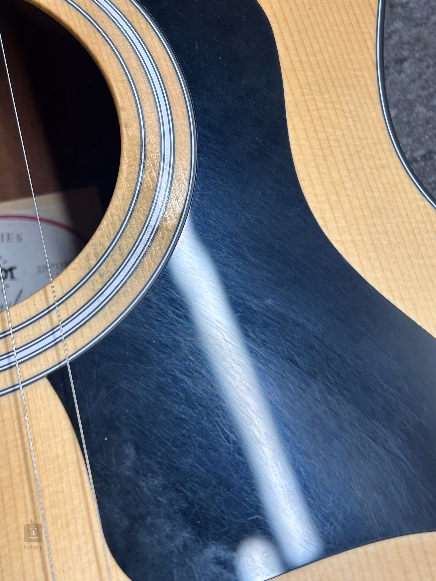Struny sú uchytené v pochrómovaných liatych mechanikách Taylor nad sedlom z micarty a nultým pražcom NuBone. Pekné spracovanie podčiarkujú tradičné prvky v podobe rozety zloženej z troch krúžkov, čierneho lemovania tela a praktického čierneho pickguardu.