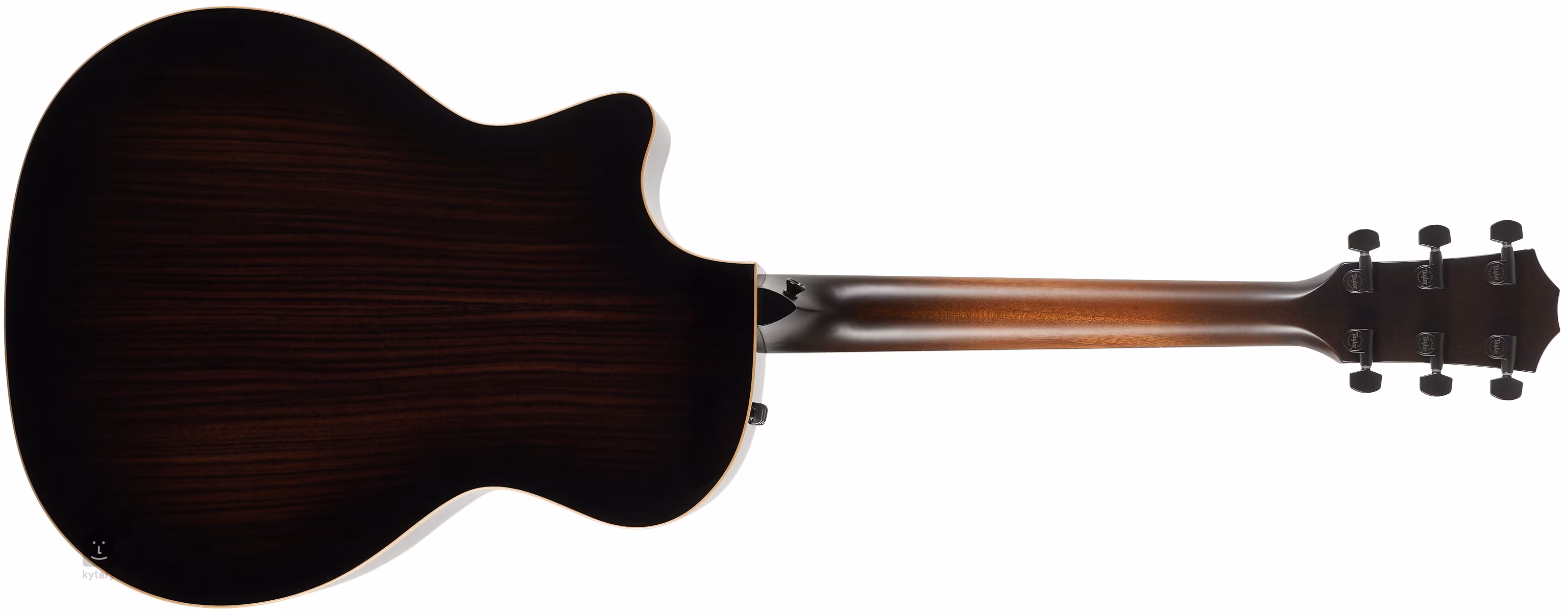 K mahagónovému krku je prilepený hmatník z kamerunského ebenu s 20 pražcami. Jemne zaoblený spodný výrez tela uľahčuje hru vo vyšších polohách hmatníka, zatiaľ čo ergonomická opierka na ruku poskytuje optimálne pohodlie pri hre. Stabilitu ladenia zaručuje uchytenie strún prostredníctvom nultého pražca Black TusQ v ebenovej hlavici a firemná mechanika Smoked Nickel. Medzi ďalšie štýlové prvky patrí javorové lemovanie tela doplnené palisandrovým hmatníkom, rozeta zložená z perleťových (Abalone) a palisandrových krúžkov, palisandrový pickguard, ozdobné perleťové polohové značky, ebenové kolíky ku krku s perleťovými bodkami a ebenová dýha na hlave zdobená perleťovým logom Taylor.