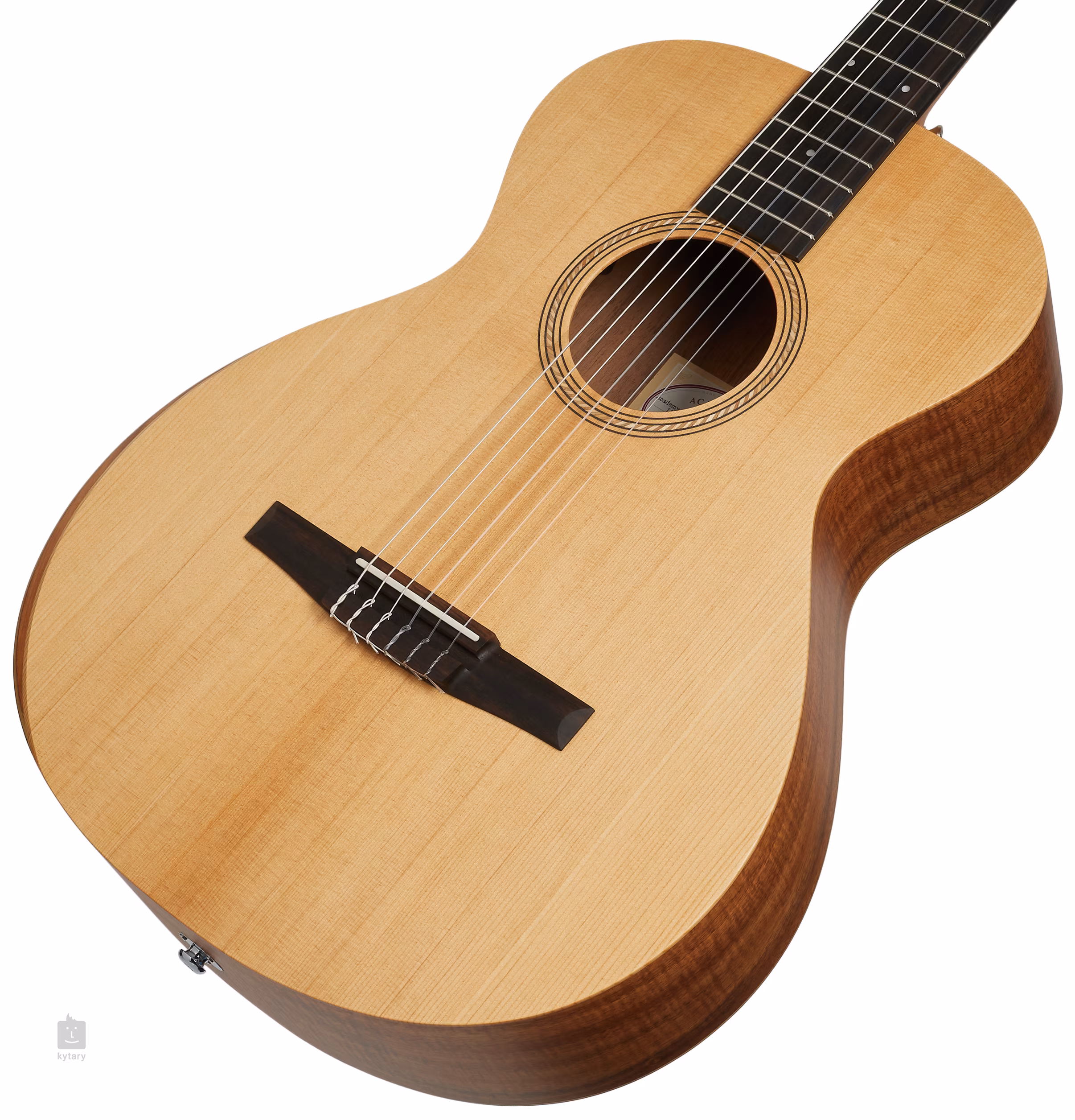 Academy 12e-N LTD je klasická elektroakustická gitara z limitovanej série Taylor s kompaktnejším tvarom tela Grand Concert. Predná doska gitary je vyrobená z masívneho, tepelne upraveného smrekového dreva, zatiaľ čo zadná doska a luby sú vyrobené z laminovaného havajského dreva koa s exkluzívnou kresbou v kvalite AA. Vďaka tepelnej úprave vrchnej dosky gitara ponúka vyvážený dynamický zvuk už vyspelých nástrojov.