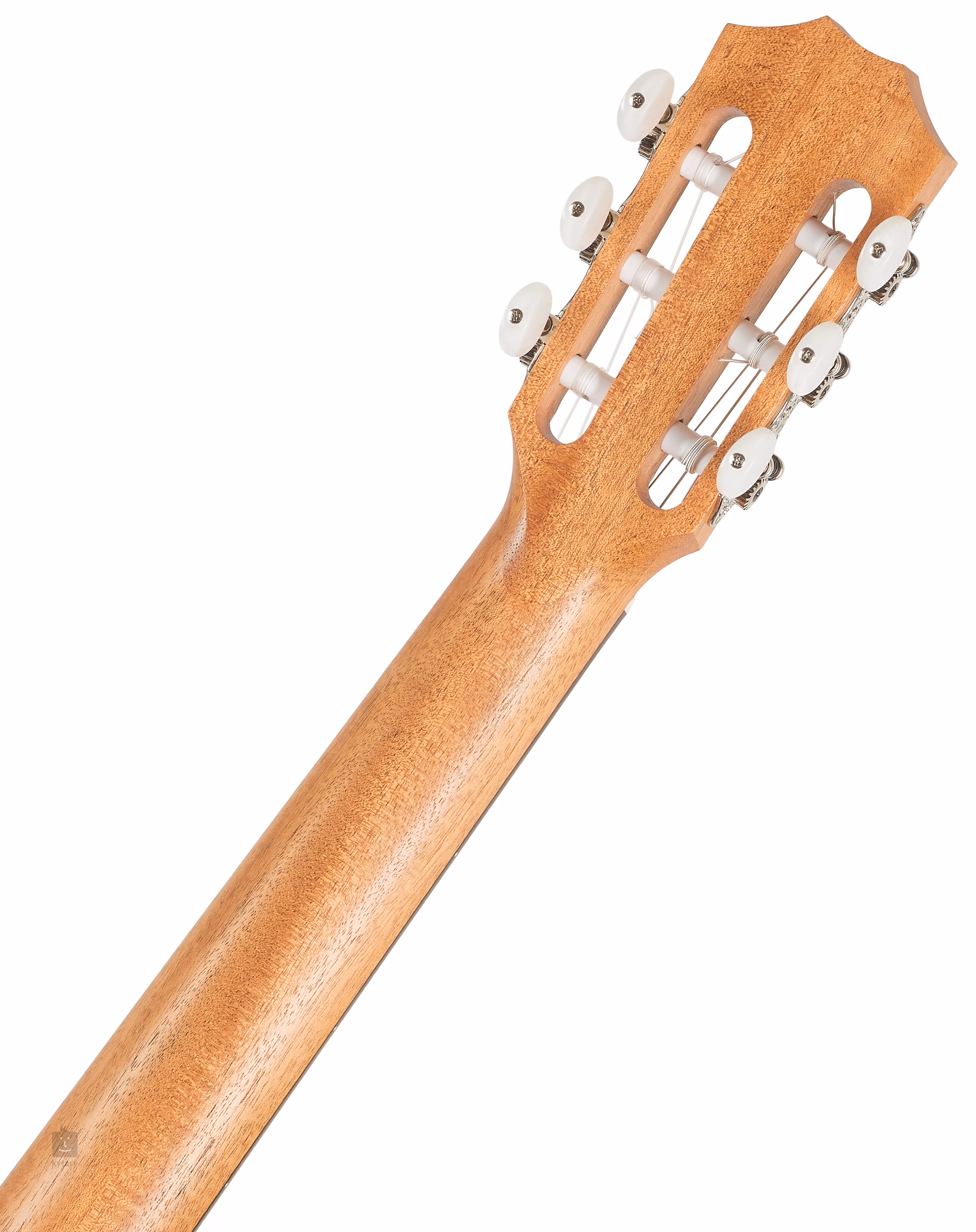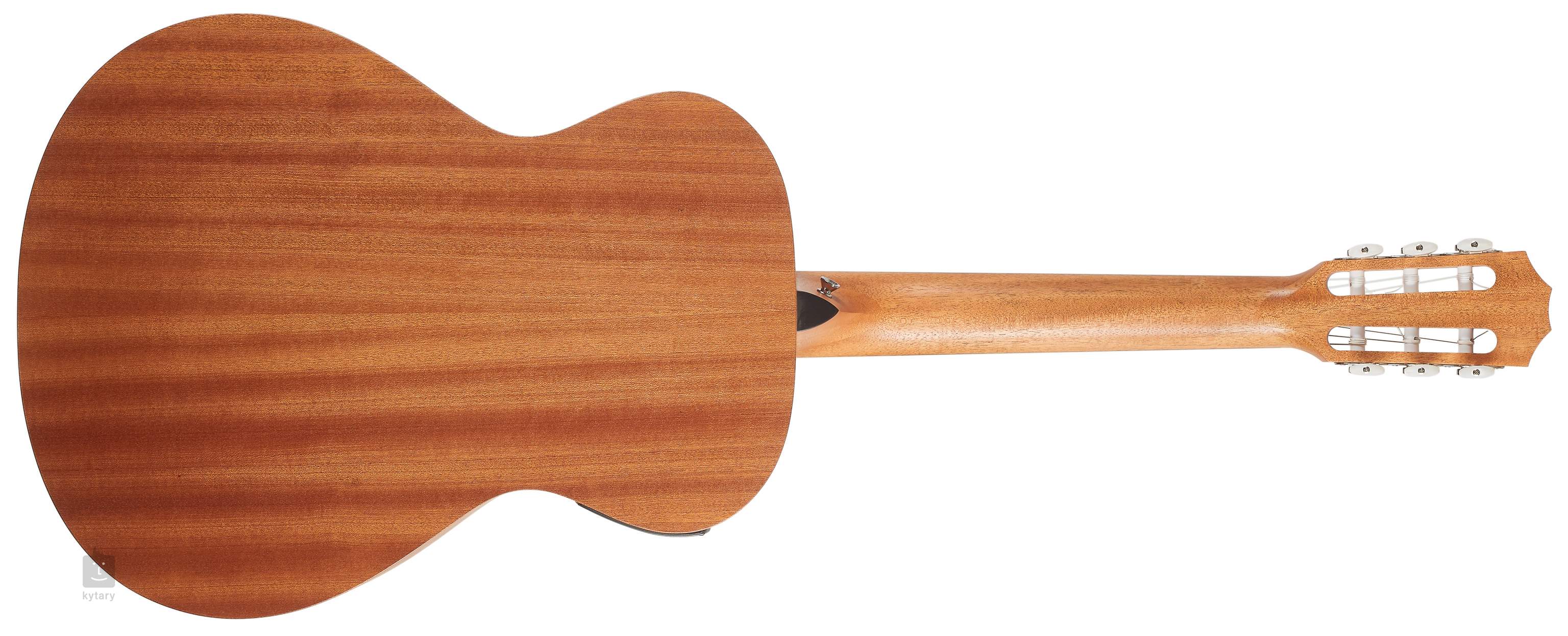 Klasická elektroakustická kytara Academy 12e-N nabízí pohodlný kompaktní tvar těla typu Grand Concert. Přední deska nástroje je vyrobena z masivu smrku Lutz, luby a zadní deska jsou zhotoveny z vrstveného ořechu. K mahagonovému krku je přilepen ebenový hmatník osazený sedmnácti pražci, polohy vyznačují tečky z imitace perleti. Hmatník s šířkou nultého pražce 47,6 mm nabízí optimální rozteč strun pro hru prstovou technikou a nevyžaduje takové rozpětí prstů jako klasické španělky. K pohodlí hráčů přispívá i ergonomická opěrka ramene (Armrest).