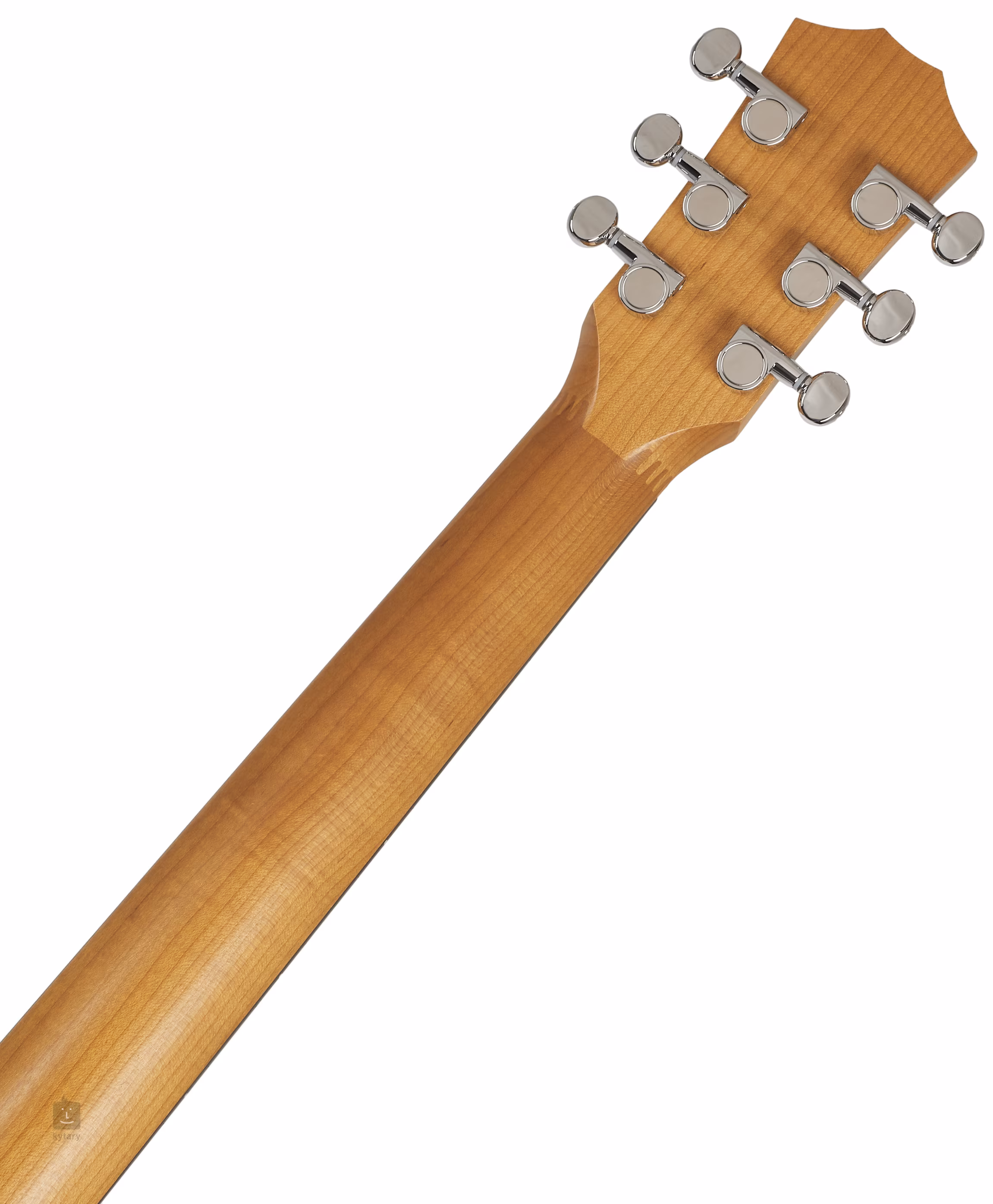 Predná doska gitary je vyrobená z masívneho smreka Sitka, zatiaľ čo zadná doska a luby sú z laminovaného orechového dreva. K javorovému krku je prilepený ebenový hmatník osadený dvadsiatimi pražcami a polohovými bodkami z imitácie perlete. Stabilné ladenie zaručuje nultý pražec strún TusQ v chrómovej liatej mechanike Taylor a ebenový hmatník. Štýlové spracovanie podčiarkujú tradičné prvky v podobe jednoduchej rozety a dýhy na hlavici z dreva copafera zdobenej logom spoločnosti.