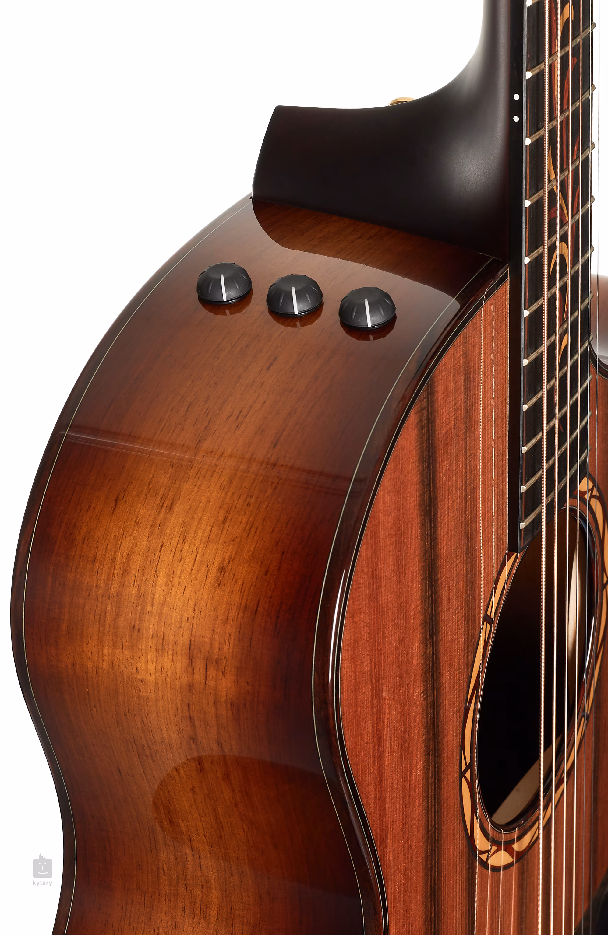 Mahagónový krk je prilepený k ebenovému hmatníku, ktorý je preniknutý intarziou Ocean vine z luxusného dreva cocobolo a boxwood. Stabilné ladenie zabezpečujú struny Gotoh 510 v zlatom prevedení s kokosovými kolíkmi a ebenovým mostíkom. Luxusné spracovanie gitary podčiarkujú ramenná opierka a okolie tela z exotického kokosového dreva, ozdobné rozety z kokosového a zimostrázového dreva, kolíky na hlavici s červenými bodkami z austrálskych opálov a logo na hlavici z boxového dreva.