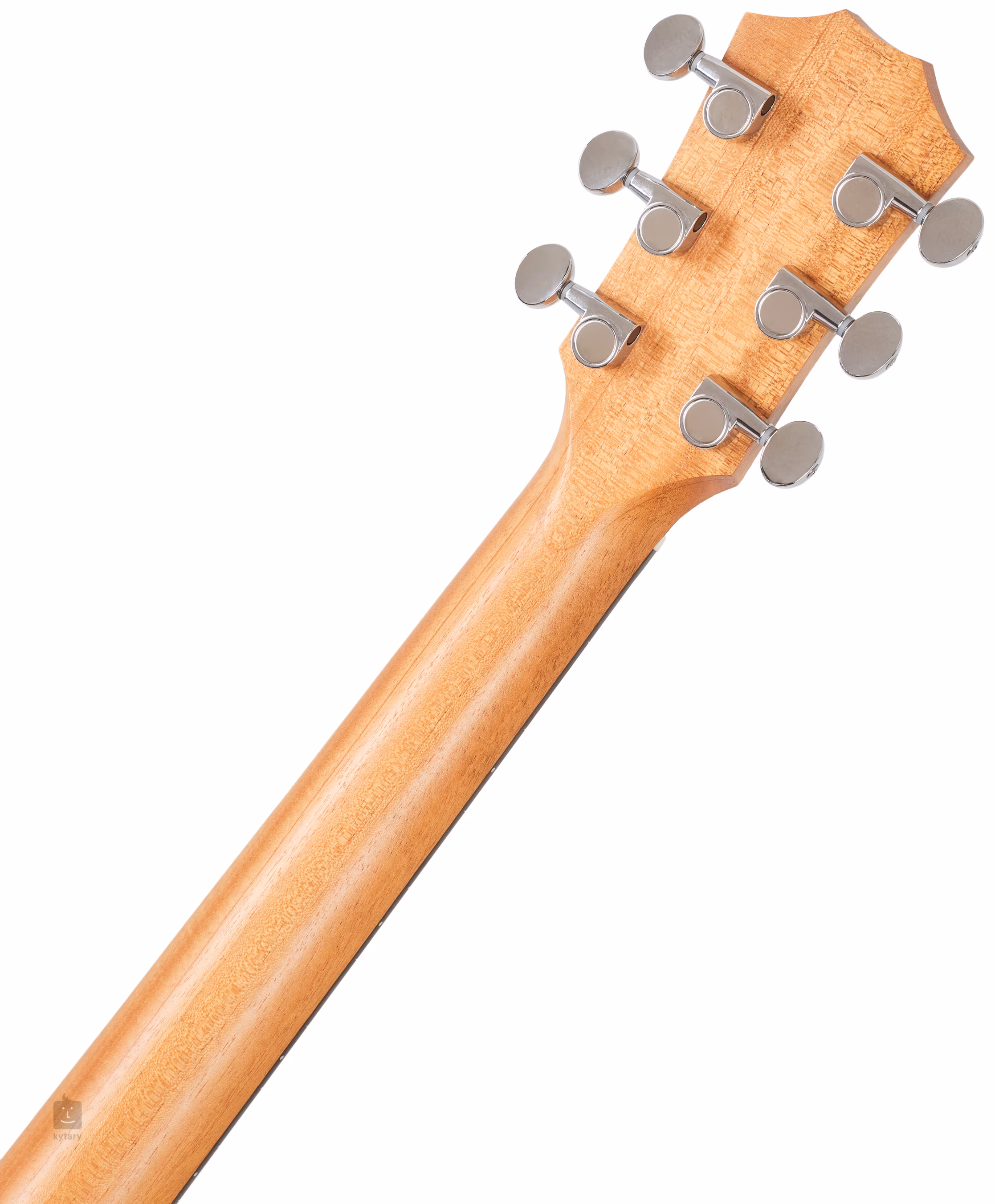 Stabilitu ladenia zaručuje uchytenie strún cez nultý pražec NuBone v chrómovej liatej mechanike Taylor a cez mikartové sedlo v ebenovej hlavici. Štýlový vzhľad nástroja podčiarkujú tradičné prvky v podobe čierneho pickguardu, rozety zloženej z čiernych a bielych krúžkov a dýhy na hlavici z kopaferového dreva zdobenej tlačeným logom Taylor.
