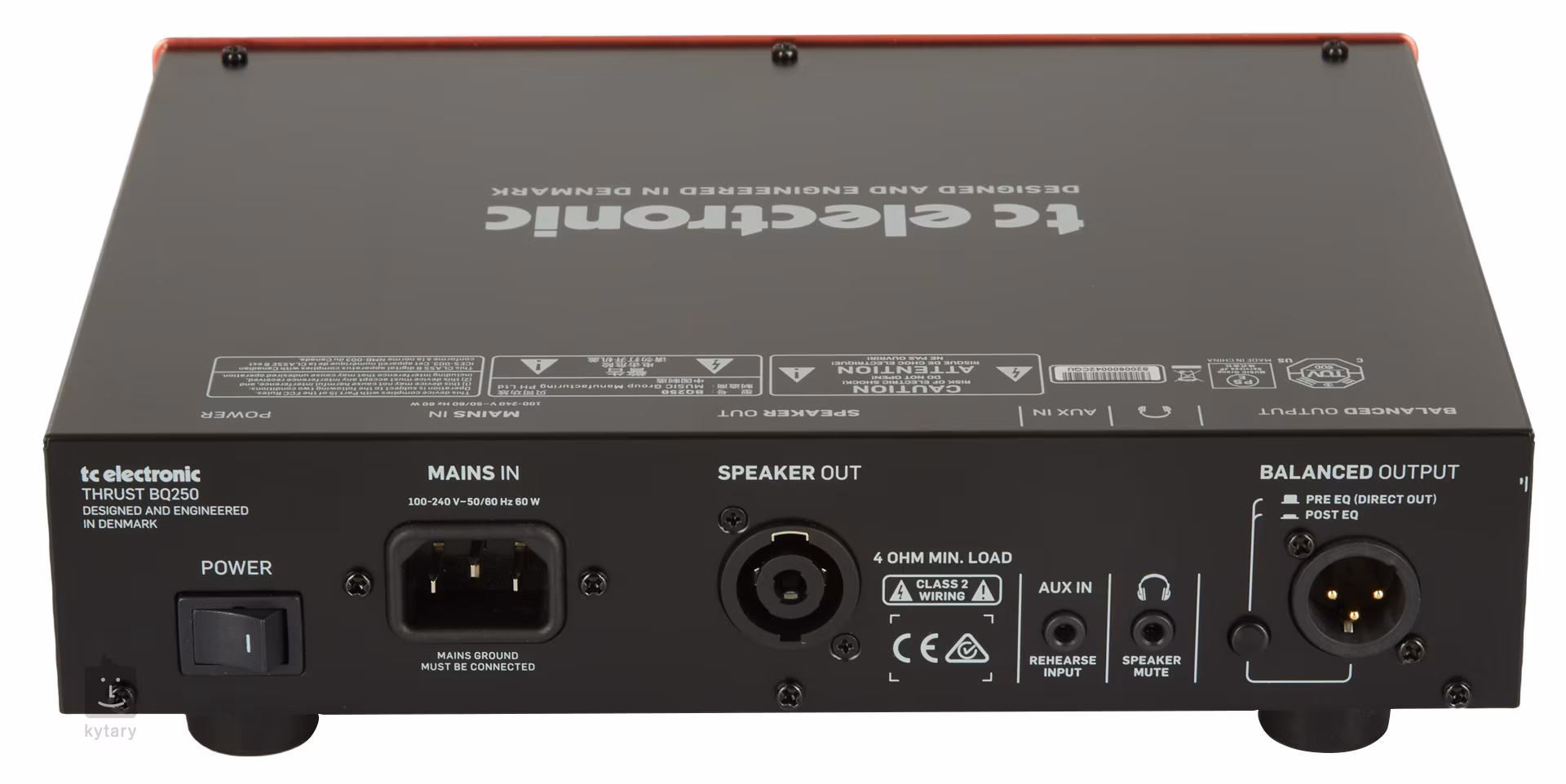 Na prednom paneli nájdete potenciometer THRUST, ktorý ovláda obvod kompresora. Vďaka tomu môžete veľmi jednoducho nastaviť dynamický rozsah zvuku tak, aby čo najlepšie vyhovoval vášmu štýlu hry a zvuk vynikol na pódiu alebo v skúšobni. Okrem toho máte k dispozícii aj DI výstup, ktorý veľmi uľahčuje nahrávanie a mixovanie.