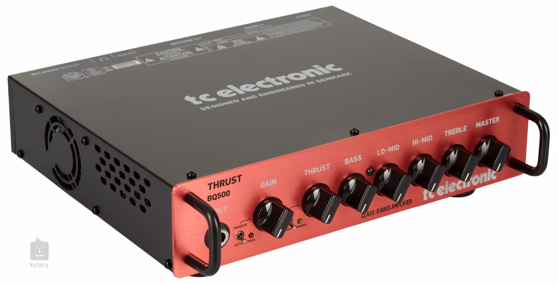 Na prednom paneli nájdete potenciometer THRUST, ktorý ovláda obvod kompresora. Vďaka tomu môžete veľmi jednoducho nastaviť dynamický rozsah zvuku tak, aby čo najlepšie vyhovoval vášmu štýlu hry a zvuk vynikol na pódiu alebo v skúšobni. Okrem toho máte k dispozícii aj DI výstup, ktorý veľmi uľahčuje nahrávanie a mixovanie.