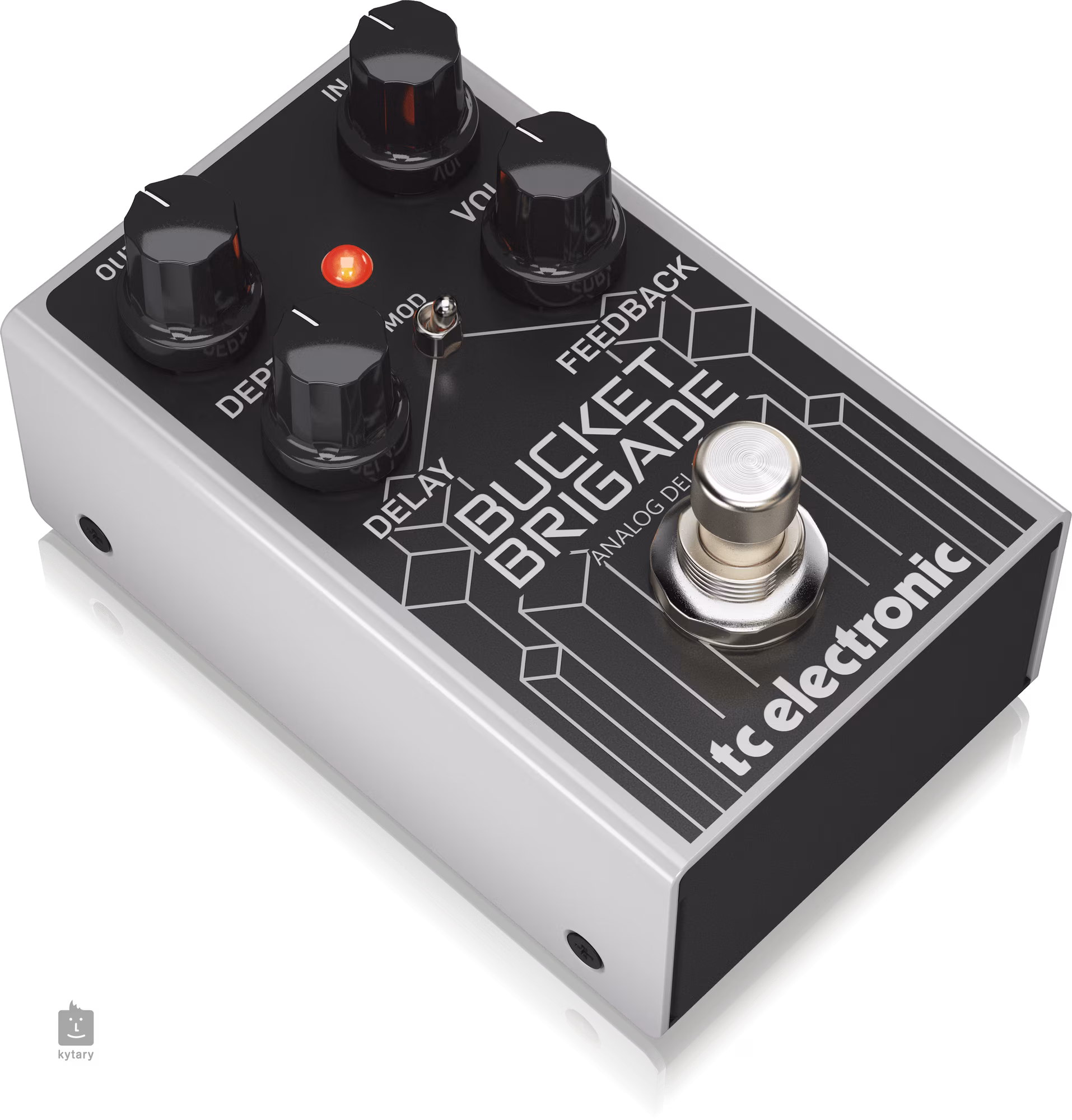 BUCKET BRIGADE ANALOG DELAY je čisto analógový BBD delay efekt v ultrakompaktnom formáte, ktorý šetrí miesto na vašom pedálovom paneli a zároveň poskytuje rovnaký teplý, vysoko kvalitný zvuk ako oveľa väčšie analógové gitarové efekty. Ponúka oneskorenie až 600 ms a možnosť nastaviť rýchlosť, intenzitu a hlasitosť efektu oneskorenia (ovládanie hlasitosti ovplyvňuje len signál oneskorenia; jednotka vôbec neovplyvňuje čistý signál). Pozadie signálu oneskorenia umožňuje prepínateľnú moduláciu a pevnú rýchlosť modulácie je možné zmeniť pomocou vnútorného trimera. Všetka elektronika je umiestnená v odolnom kovovom šasi a mnohí ocenia konektory umiestnené na hornej strane, ktoré vám umožnia umiestniť viac gitarových efektov na váš pedalboard. Obvod true bypass zabezpečuje úplne čistú signálovú cestu, keď je jednotka vypnutá. Je potrebný 9V napájací zdroj.
