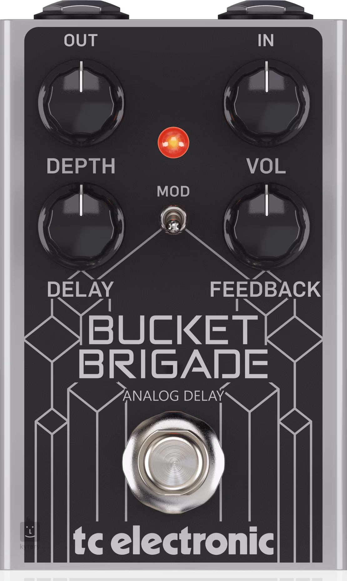 BUCKET BRIGADE ANALOG DELAY je čisto analógový efekt BBD delay v ultrakompaktnom formáte, ktorý šetrí miesto vo vašom pedalboarde a zároveň poskytuje rovnako teplý a kvalitný zvuk ako oveľa väčšie analógové gitarové efekty. Ponúka čas oneskorenia až 600 ms a možnosť nastavenia rýchlosti, intenzity a hlasitosti delay efektu (ovládač Volume ovplyvňuje iba delay signál, krabička sa vôbec nedotýka vášho čistého signálu). Podladenie delay signálu umožňuje prepínateľnú moduláciu, pevnú rýchlosť modulácie je možné meniť interným trimrom.