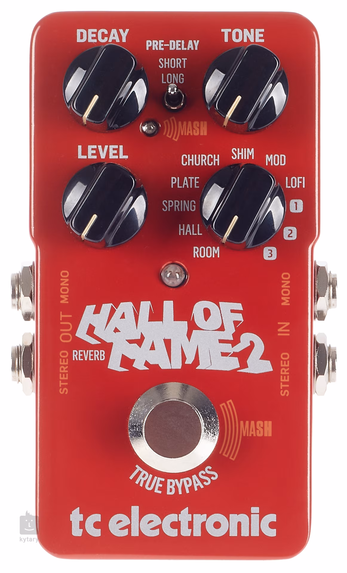 Pedálový efekt Hall of Fame 2 ponúka všetko, čo predchádzajúce modely, a navyše nové funkcie. Pomocou technológie MASH, ktorá sa aktivuje podržaním nožného spínača, kombinuje funkcie reverbu a expression pedálu. Táto technológia je citlivá na dotyk, takže čím viac stlačíte spínač, tým je efekt výraznejší. Keď zdvihnete nohu, funkcia MASH sa automaticky prepne do režimu bypass.