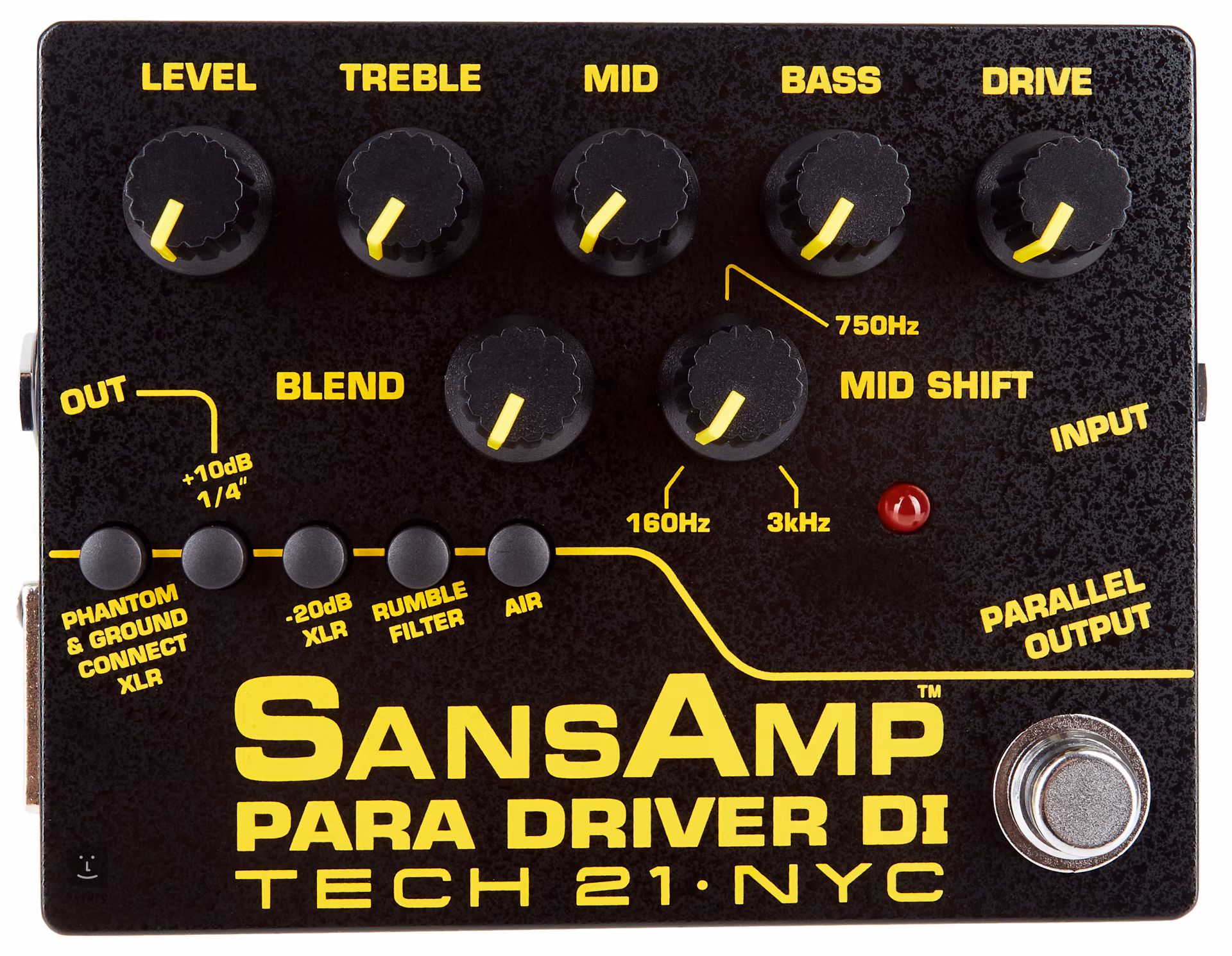 Bass Driver DI nie je len obyčajná DI skrinka; ľahko poskytuje mohutný vintage lampový zvuk, čistý a výrazný tón vhodný pre slap, nekompromisnú distorziu a všetko medzi tým. Tri rôzne výstupy umožňujú pripojenie k PA systémom, mixážnym a nahrávacím pultom alebo štandardným zosilňovačom. Rozsiahle možnosti ovládania zahŕňajú funkciu Blend, ktorá preslávila pedále SansAmp a umožňuje vám mixovať pomer priameho signálu so signálom SansAmp.