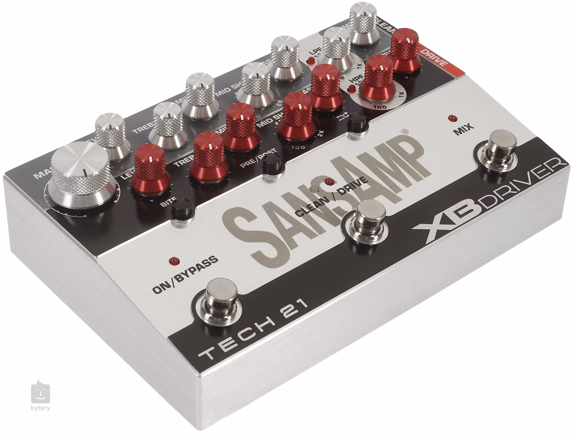 SansAmp XB Driver je 100% analógový, dvojkanálový pedál, ktorý je skutočnou pokladnicou cenených basových tónov. Je to sofistikovaný prístroj s možnosťou duálneho zosilnenia, bi-amp a DI, ktorý je vybavený pätnástimi gombíkmi a tromi prepínačmi usporiadanými intuitívne podobne ako ovládacie prvky známych zosilňovačov. Vďaka tomu je možné ľahko vytvoriť širokú škálu basových tónov bez potreby dlhoročného štúdia. Kanály Clean a Drive sú plne frekvenčne nezávislé kanály, ktoré možno používať samostatne alebo ich mixovať pomocou nožného prepínača Mix. V režime Mix je možné pomocou prepínača crossover aktivovať variabilné LPF a HPF filtre, čo umožňuje ešte detailnejšie úpravy zvukového profilu.