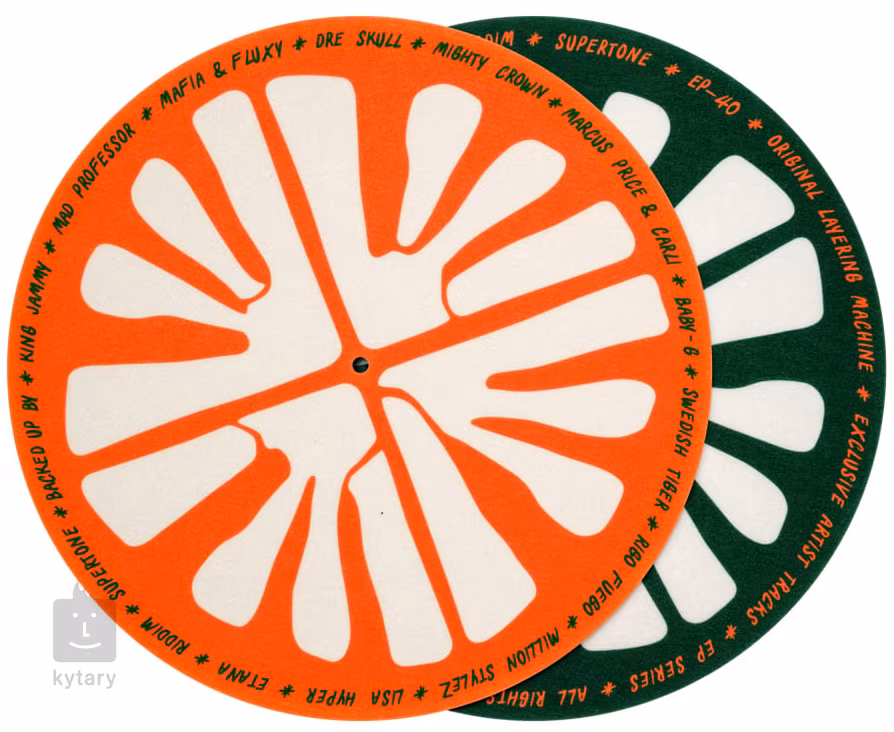 teenage engineering EP-40 Slip Mats 2-Pack představují stylový a funkční doplněk pro každého, kdo miluje vinylové desky a chce chránit svůj gramofon i nahrávky. Tento set obsahuje dva slip maty z odolného 2mm filcu, které zajišťují hladké otáčení talíře a minimalizují nežádoucí vibrace při přehrávání nebo mixování. Každý z nich zdobí ikonická grafika Drummer Sun, inspirovaná nástrojem EP-40 riddim z dílny teenage engineering, čímž dodává vašemu setupu originální vizuální styl.