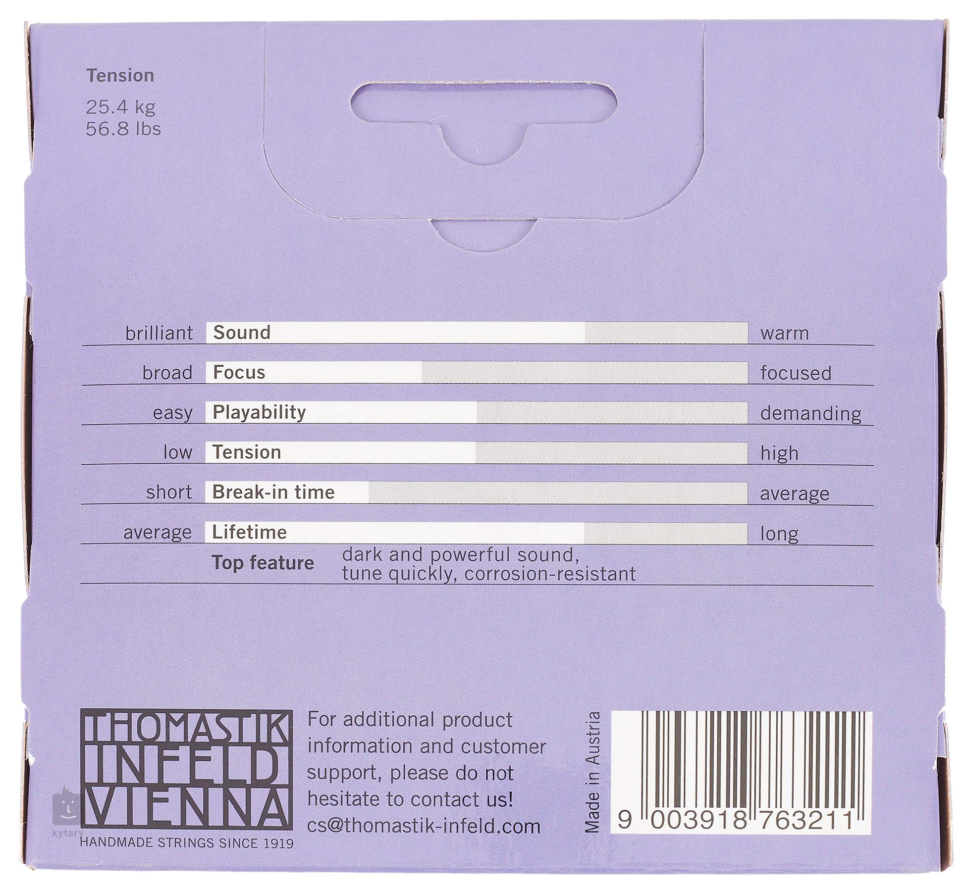 Kombinácia bezkonkurenčnej ceny a kvality strún Thomastik-Infeld je presne to, čo robí z violovej sady Alphayue atraktívnu voľbu pre začínajúcich hráčov. Struny so syntetickým jadrom ponúkajú ľahšiu odozvu pri úderoch slákom a plný zvuk porovnateľný s drahšími sadami.
