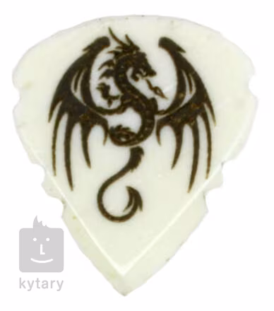 Či už hľadáte darček pre nadšeného gitaristu, alebo len hľadáte dokonalý zvuk a chcete vyskúšať trsátka z netradičných materiálov, v Timber Tones nájdete to, čo potrebujete. Séria Arrow Tones Tribal je ideálna pre gitaristov, ktorí uprednostňujú tvrdé trsátka s veľmi ostrým hrotom, vhodné napríklad na rýchle sólovanie alebo brnkanie. Majú hrúbku 3 mm a vrúbkovaný okraj, ktorý im dodáva štýlový vzhľad. Tento model s motívom draka je vyrobený z byvolej kosti, veľmi tvrdého materiálu, ktorý zvýrazňuje výšky a dodáva gitare prenikavý a jasný tón.