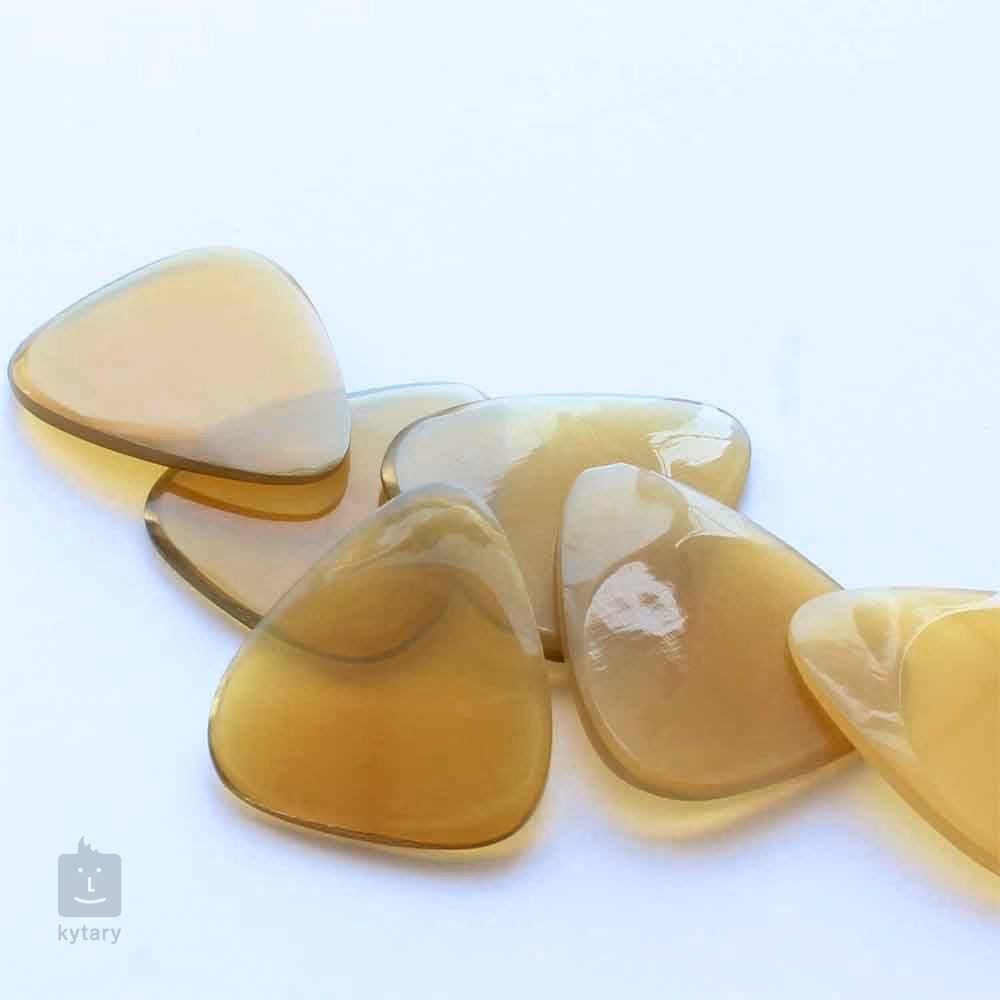 Či už hľadáte darček pre nadšeného gitaristu, alebo len hľadáte dokonalý zvuk a chcete vyskúšať trsátka z netradičných materiálov, v Timber Tones nájdete to, čo potrebujete. Toto trsátko z radu Bone Tones je vyrobené z byvolieho rohu, vďaka čomu má teplý a zaoblený tón. Má hrúbku 2,5 mm, ktorá sa smerom k špičke zužuje na 0,7 mm. Tento model je vhodný pre akustické aj elektrické gitary.
