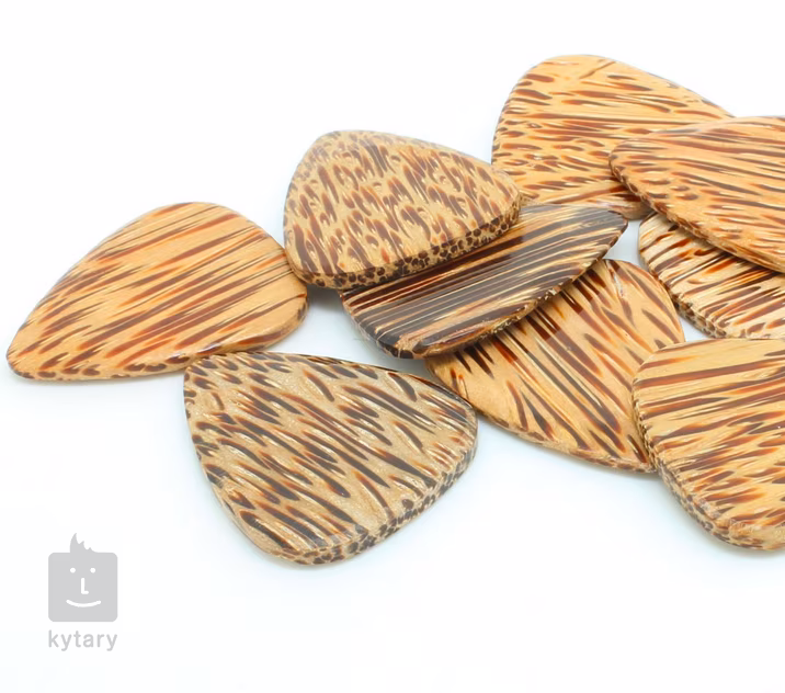 Či už hľadáte darček pre nadšeného gitaristu, alebo len hľadáte dokonalý zvuk a chcete vyskúšať trsátka z netradičných materiálov, v Timber Tones nájdete to, čo potrebujete. V tejto sade sa nachádzajú štyri trsátka vyrobené z relatívne mäkkého dreva kokosového orecha, ktoré im dodáva teplý a okrúhly tón, vhodný najmä pre akustické gitary. Trsátka majú hrúbku 2,4 mm, ktorá sa smerom k špičke zužuje na 0,7 mm. Sú ručne brúsené a lakované.