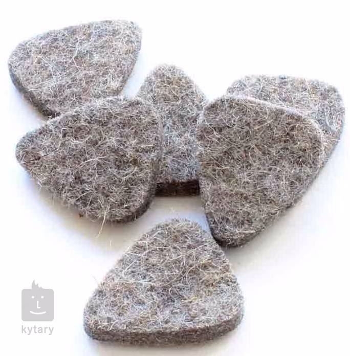 Sada trsátok Felt Tones Mini obsahuje štyri malé trsátka z vlnenej plsti, ktoré sú ideálne na hru na ukulele. Tvarom pripomínajú klasické jazzové trsátka a sú vhodné najmä na presnú hru a brnkanie. Prírodná vlna je mäkká a poddajná, vďaka čomu je jemná k nylonovým strunám a dodáva zvuku okrúhly a teplý tón. V balení nájdete trsátka s rôznou tvrdosťou - biele majú hrúbku 4 mm, sivé 5 mm, hnedé a čierne 5 mm a sú navyše vystužené, čo zvyšuje ich tvrdosť a dodáva im jasnejší zvuk. Súčasťou balenia je praktická plechová krabička.