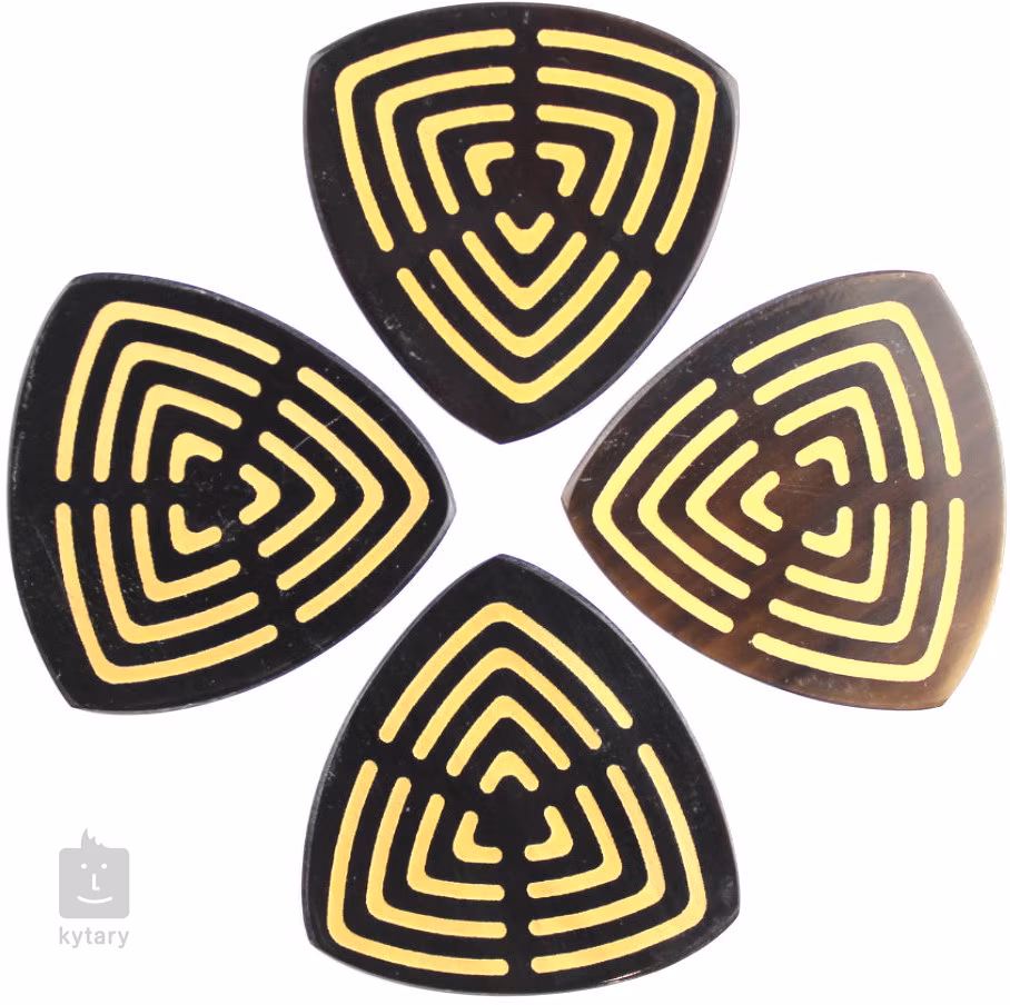 Či už hľadáte darček pre nadšeného gitaristu alebo len hľadáte dokonalý zvuk a chcete vyskúšať trsátka vyrobené z neobvyklých materiálov, v Timber Tones určite nájdete to, čo potrebujete. Táto sada trsátok z byvolieho rohu dodá vášmu nástroju teplý a zaoblený tón, či už hráte na akustickej, elektrickej alebo dutej gitare. Trsátka majú hrúbku približne 1 mm, vďaka čomu sú dostatočne pružné. Zlatý dizajnový motív im nielen dodáva štýlový vzhľad, ale aj pevný, neklzký úchop. Toto balenie obsahuje štyri trojuholníkové trsátka s tromi hracými hrotmi a veľkou úchopovou plochou.