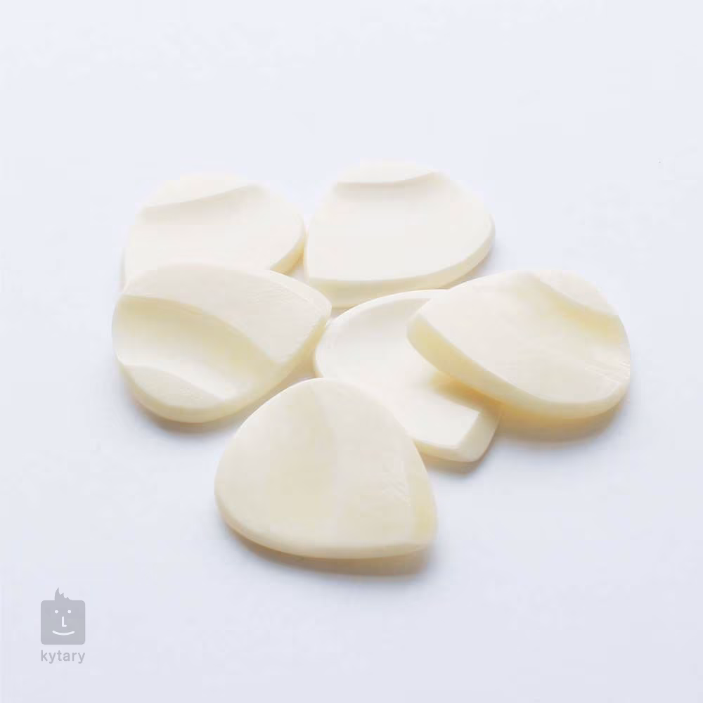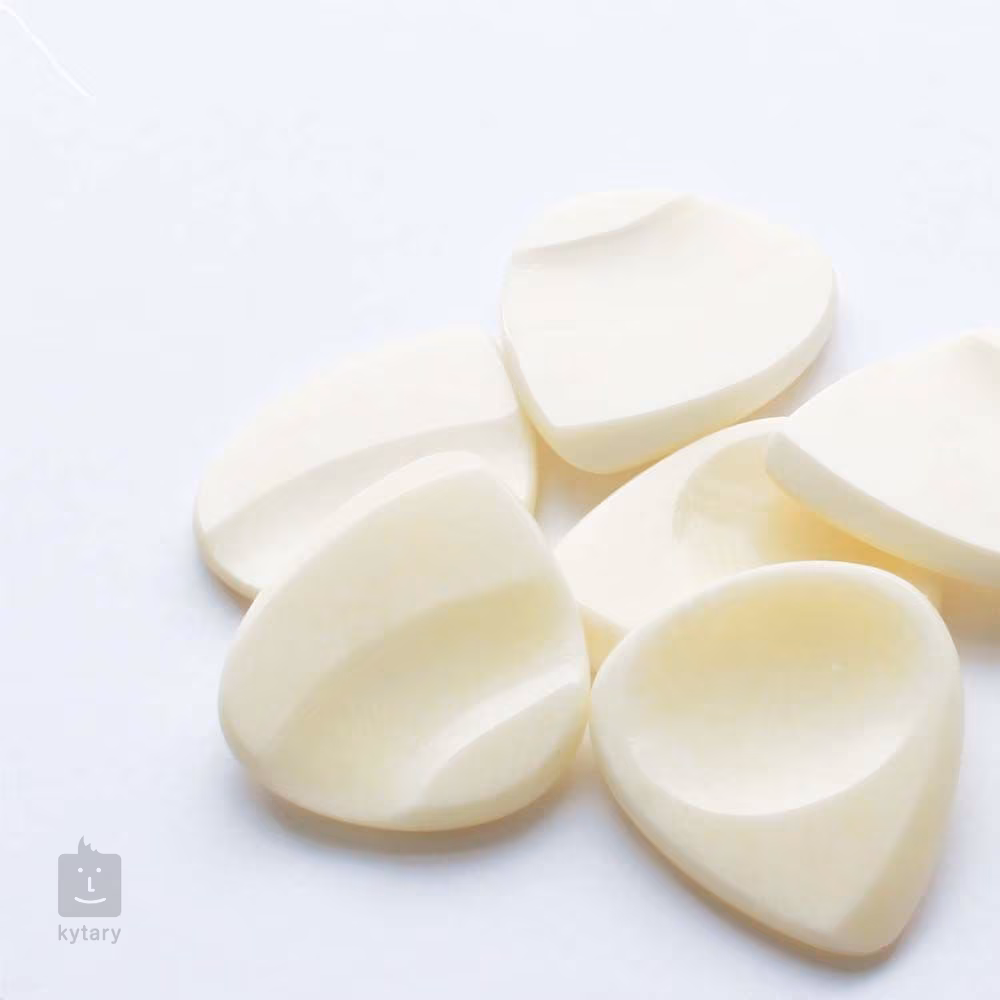 Či už hľadáte darček pre nadšeného gitaristu, alebo len hľadáte dokonalý zvuk a chcete vyskúšať trsátka z netradičných materiálov, v Timber Tones nájdete to, čo potrebujete. Toto trsátko z radu Groove Tones je vyrobené z byvolej kosti, vďaka čomu má prenikavý zvonivý tón. Je to ideálna voľba pre gitaristov, ktorí hľadajú pevné trsátko s pevným a pohodlným úchopom. Je tvarované tak, aby presne padlo do ruky, s jamkou na palec na jednej strane a jamkou na ukazovák na druhej strane. To poskytuje úplne spoľahlivý úchop, ktorý udrží trsátko v ideálnej polohe počas celej hry.