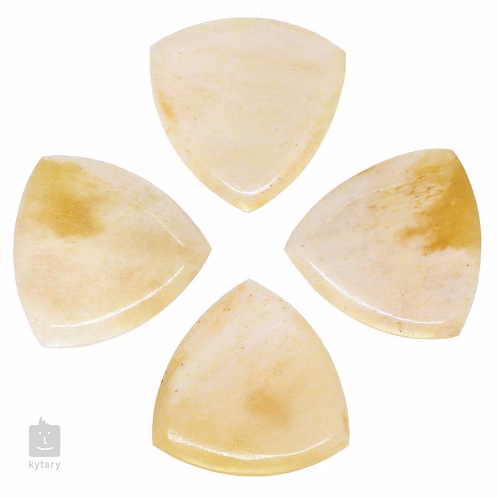 Či už hľadáte darček pre nadšeného gitaristu, alebo len hľadáte dokonalý zvuk a chcete vyskúšať trsátka z netradičných materiálov, v Timber Tones určite nájdete to, čo potrebujete. Séria Gypsy Tones je ideálna pre gitaristov, ktorí uprednostňujú tvrdé, pevné trsátka s veľkou úchopovou plochou. Majú rozmery 3 x 3 cm a hrúbku 3,5 mm. V tejto sade nájdete štyri trsátka vyrobené z byvolej kosti, ktorá im dodáva prenikavý a zvonivý tón.
