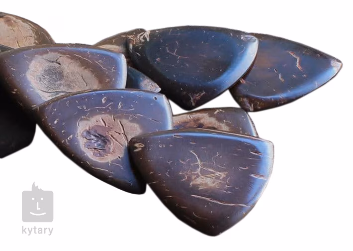 Či už hľadáte darček pre nadšeného gitaristu, alebo len hľadáte dokonalý zvuk a chcete vyskúšať trsátka z netradičných materiálov, v Timber Tones nájdete to, čo potrebujete. Séria Gypsy Tones je ideálna pre gitaristov, ktorí uprednostňujú tvrdé, pevné trsátka s veľkou úchopovou plochou. Majú rozmery 3 x 3 cm a hrúbku 3,5 mm. Tento model je vyrobený z kokosového orecha, ktorý mu dodáva teplý a zaoblený tón.