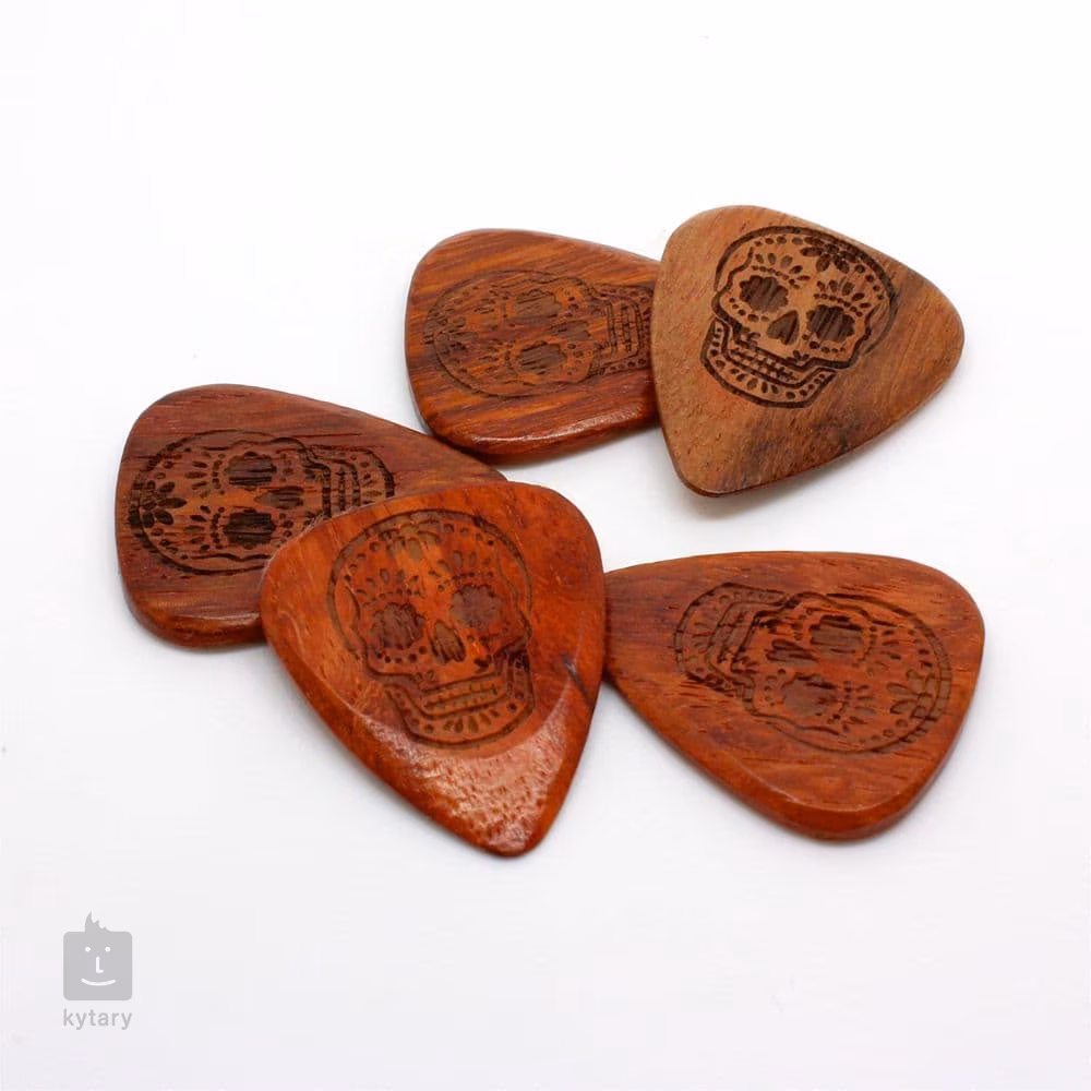 Drevené trsátko Tetovanie Tóny Candy Skull vhodné najmä pre elektrickú gitaru.