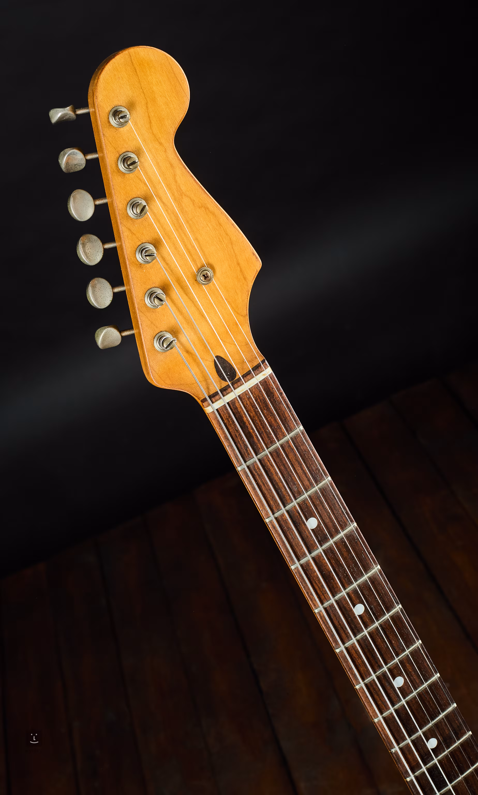 Tělo z japonského senu (obdoba severoamerického jasanu) je připevněné 4 šrouby k javorovému krku. Hmatník je palisandrový s 21 pražci. Japonské snímače jsou typické singly navinuté ve vintage stylu. Nástroj má velmi pěkný a pohodlný krk, kromě kosmetické vadě na hlavici je celkově v perfektním stavu.