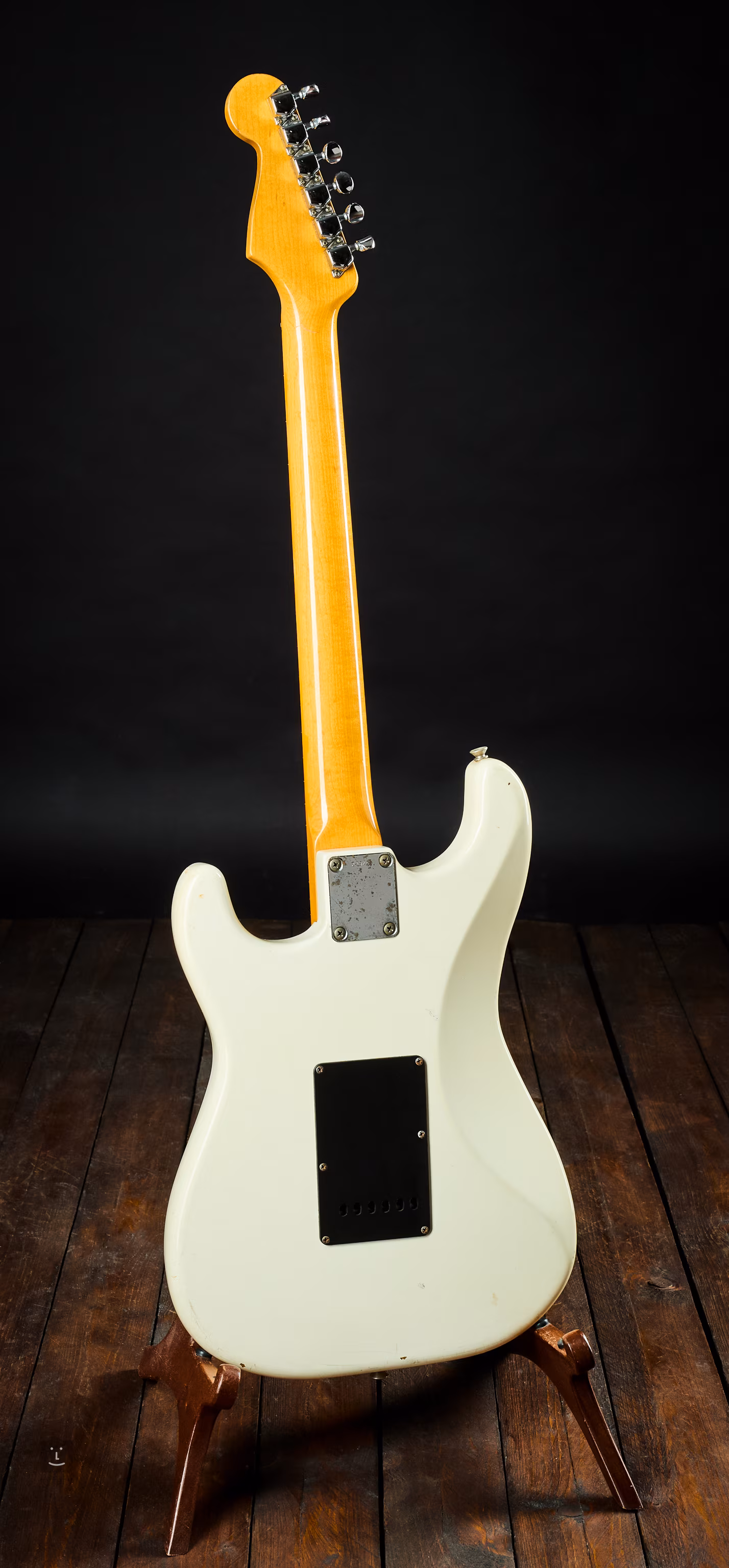 Gitara Stratocaster vyrobená v Japonsku spoločnosťou Tokai, 80. roky. Špeciálna verzia s iba dvoma ovládačmi – hlasitosťou a tónom – presne tak, ako bolo v móde v 80. rokoch, keď sa ovládače elektrických gitár vo veľkej miere presúvali z tela nástroja na podlahu medzi reproduktory a efektmi.