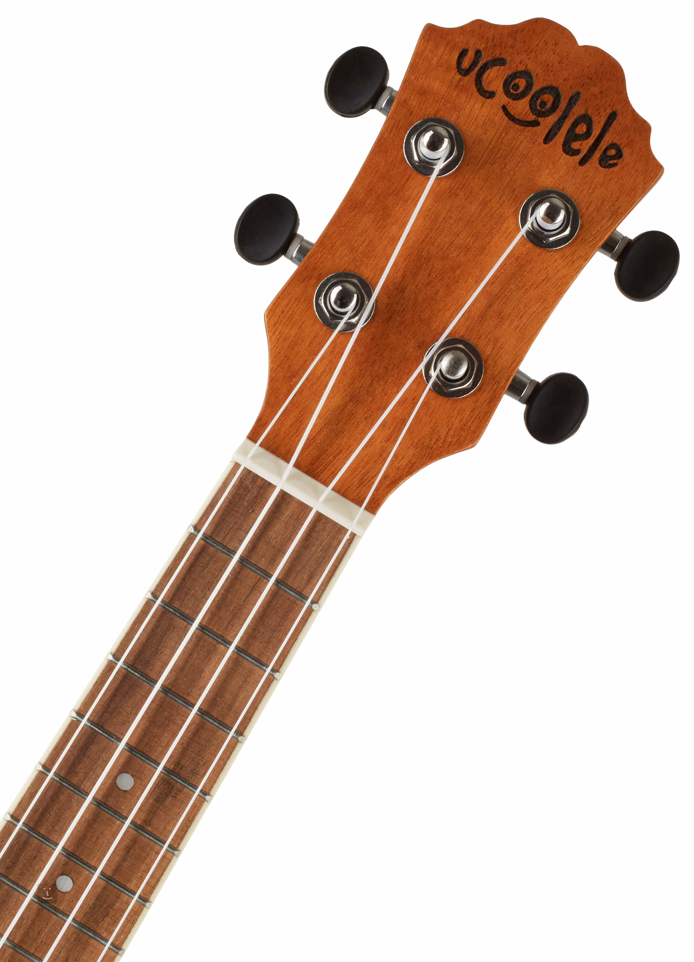 Sopránové ukulele Ucoolele 004 je cenovo dostupný nástroj, ktorý neurazí ani tých najskúsenejších hráčov na ukulele. Telo nástroja vyrobené z okoumé zdobí povrchová úprava s otvorenými pórmi. Ku krku z okoumé je prilepený orechový hmatník s dvanástimi pražcami. Struny sú uchytené v hmatníku z orechového dreva a ladiacich mechanikách s čiernymi kolíkmi nad kosteným hmatníkom. Dizajn ukulele umocňuje svetlé lemovanie tela a hmatníka.