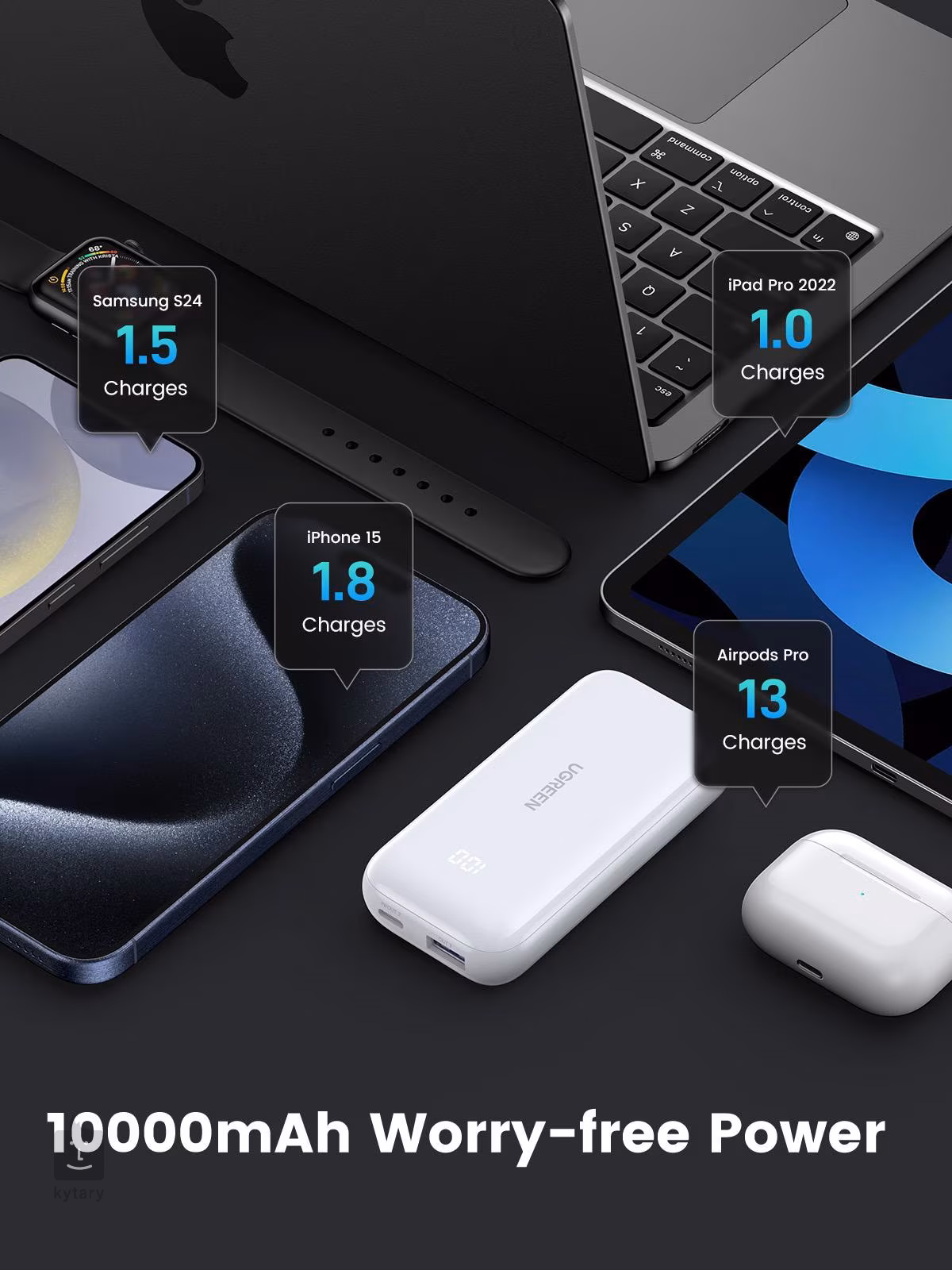 Powerbanka Ugreen 25189 10000 mAh je ideálnym spoločníkom na rôzne výlety alebo dovolenky. Kvalitná konštrukcia obsahuje šesť úrovní ochrany proti prepätiu, prebitiu, úplnému vybitiu, prehriatiu a skratu, takže sa nemusíte obávať samovznietenia ani poškodenia dobíjaných zariadení.