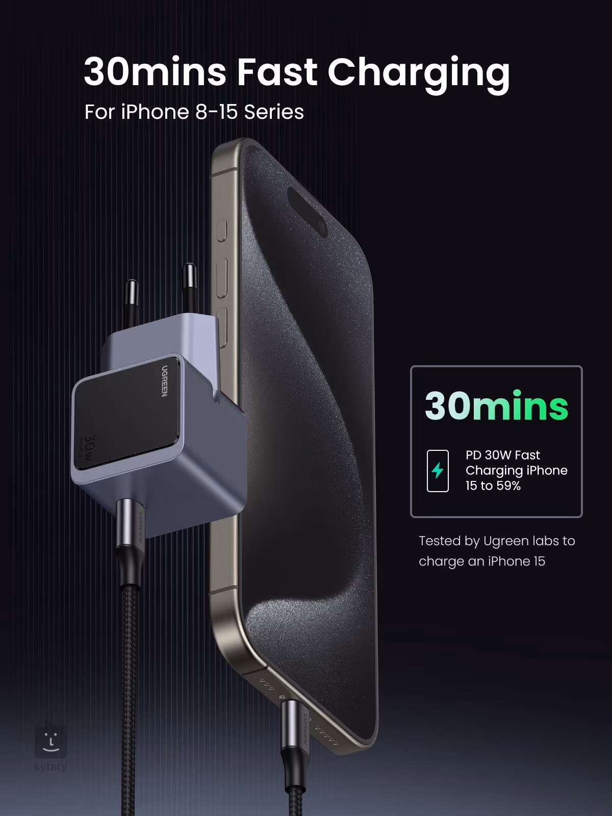 S 30 W nabíjacím vý konom a podporou najnovších technológií (PD 3.0, QC4+, PPS a ďalšie) nabijete svoje zariadenia rýchlejšie ako kedykoľvek predtým. Napríklad moderný iPhone môžete nabiť na 50 % za 60 minút. Technológia GaN (nitrid gália ) umožňuje vytvoriť nabíjačku, ktorá je menšia, ľahšia a účinnejšia ako tradičné modely. Vďaka tomu je nielen kompaktná, ale aj menej horúca a poskytuje stabilnejší výkon.
