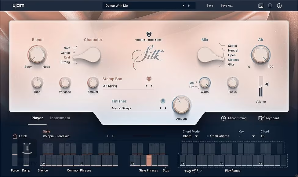 Silk 2 prináša nový režim nástroja, štýly brnkania a trsania, funkciu otvorených akordov, 40 emulácií stomp boxov a 75 režimov Finisher FX. S týmto pluginom získate melodickú hrejivosť a jemnosť skúseného štúdiového virtuóza.