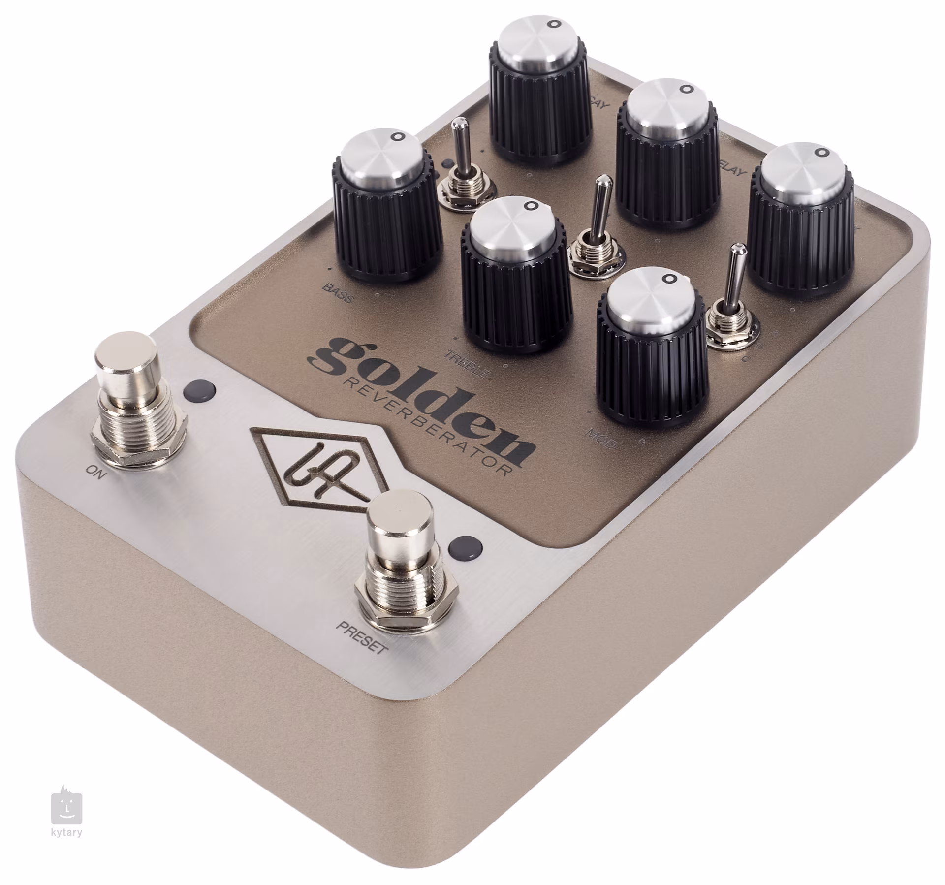Universal Audio Golden Reverberator je stereo reverb pedál s prémiovými emuláciami špičkových reverb efektov. V jednom kompaktnom šasi ponúka tri základné typy reverbových efektov - pružinové reverby z amerických gitár zo 60. rokov, štúdiové doskové reverby používané v slávnych amerických štúdiách, ako napríklad Record Plant, a digitálne reverby zo štúdiového hardvéru 70. rokov. Zvuk každého typu efektu možno podrobnejšie špecifikovať pomocou troch alternatív/voicingov. Štandardné ovládacie prvky pedálu určujú trvanie a rýchlosť nástupu efektu reverb, pomer suchého a mokrého signálu, EQ (dvojpásmový EQ) a intenzitu pridanej modulácie. Druhý pedál s nožným spínačom možno použiť na uloženie obľúbených nastavení/presetov.