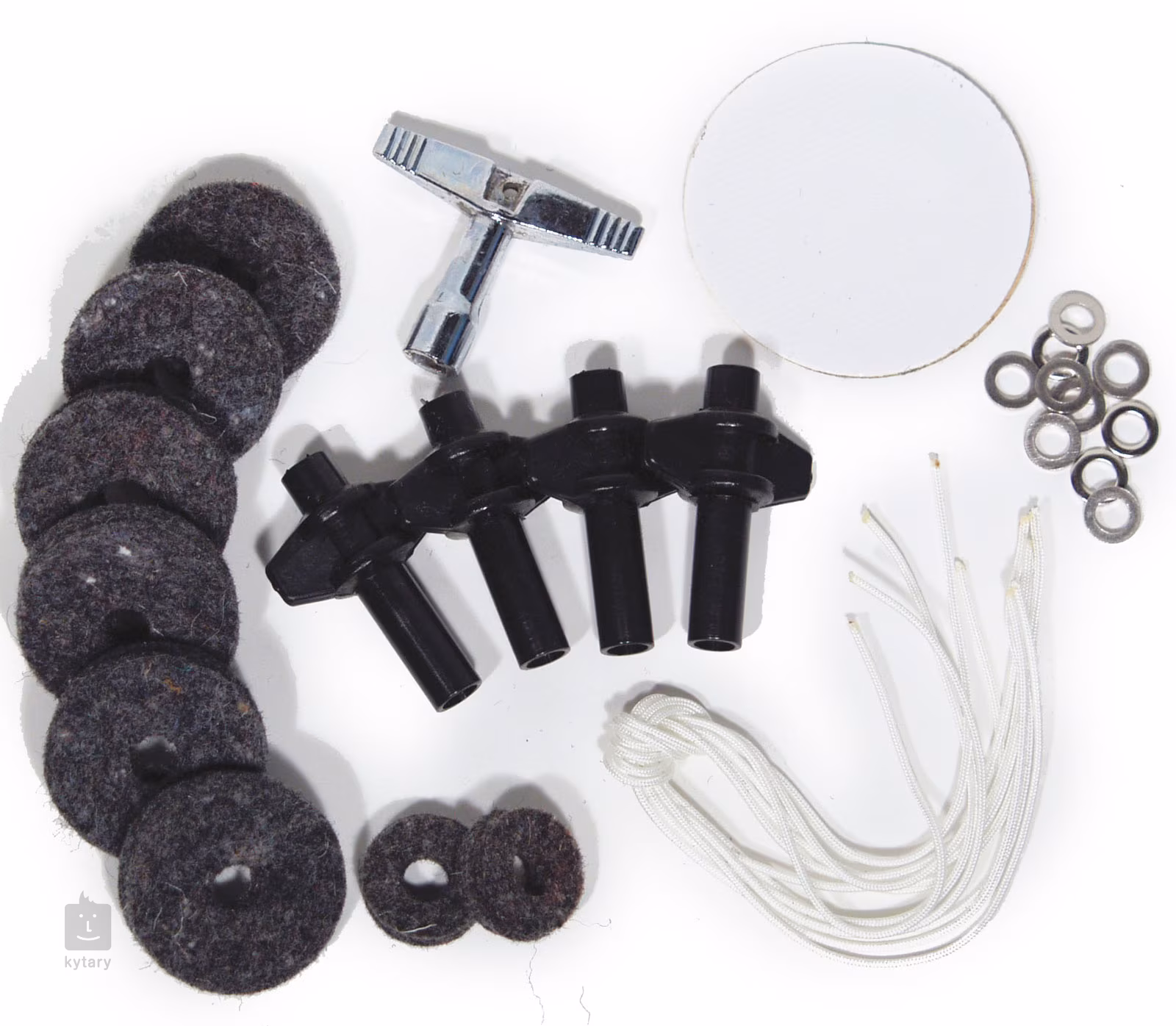 Tento balíček obsahuje všetko, čo potrebujete pri hre na bicie alebo ako "prvú pomoc" pri akomkoľvek probléme. Súčasťou balenia je ladiaci kľúč, šesť strún na pripevnenie strún na snare bubon, dve podložky pod hi-hat, šesť podložiek pod ďalšie činely, štyri krídlové skrutky, 10 podložiek pod ladiace mušle a terčík na blánu basového bubna.