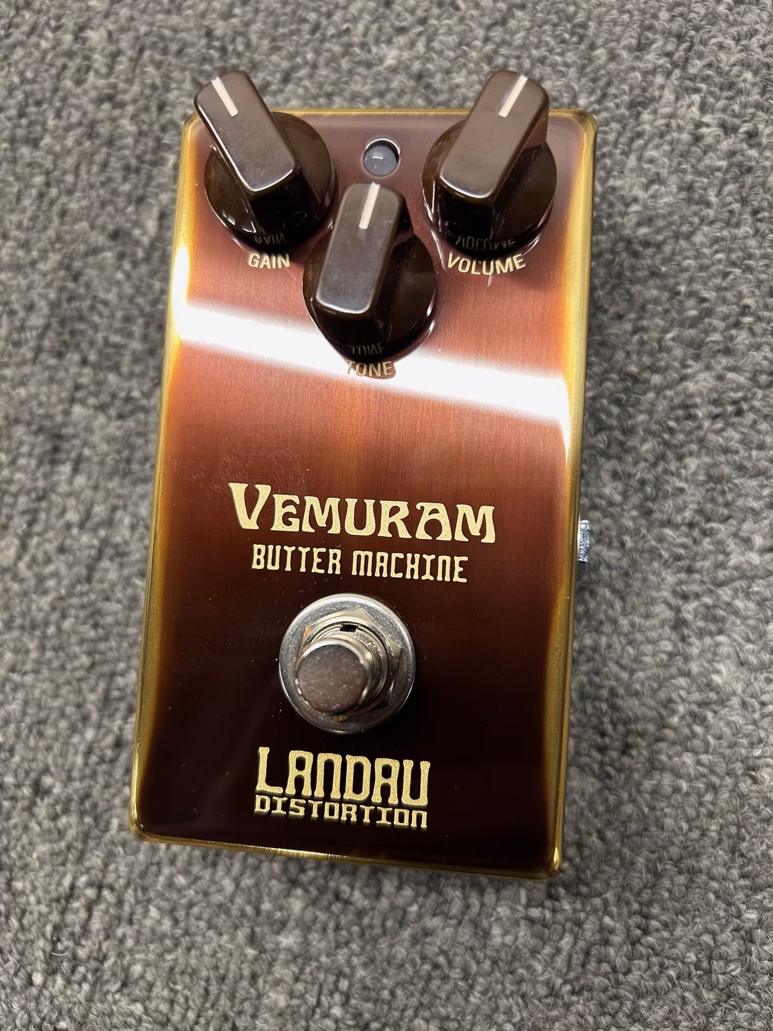 Gitarový efekt Vemuram Butter Machine vznikol v spolupráci s americkým gitaristom Michaelom Landauom. Ide o trochu iný distortion pedál, ktorý vám dáva plnú kontrolu nad dynamikou vašej hry vrátane jemných nuáns. Štruktúra skreslenia Butter Machine sa pohybuje od krásne otvoreného prirodzeného overdriveu až po plnohodnotné skreslenie, ale rozhodne nečakajte metalické high-gain skreslenie. Butter Machine vám poskytne poriadnu porciu gainu a krásny sustain, pričom dobre reaguje aj na vypnutie hlasitosti na potenciometri gitary, kde tón zostáva čistý úderný a hutný.
