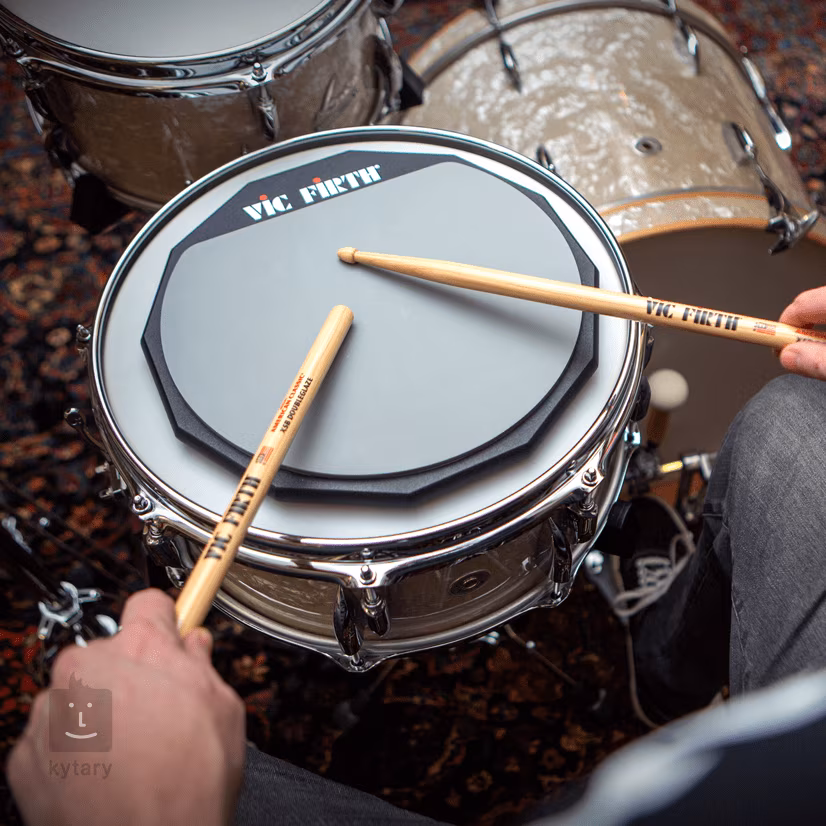 Tréningové podložky Vic Firth sú k dispozícii v dvoch veľkostiach, 6 alebo 12 palcov, a v dvoch prevedeniach - základná verzia je vyrobená z mäkkej gumy pre naozaj tichý tréning, zosilnené verzie označené písmenom "D" majú navyše možnosť použiť hrubší gumový základ pre intenzívnejší tréning a možnosť počuť každý úder, navyše majú drevenú základňu.