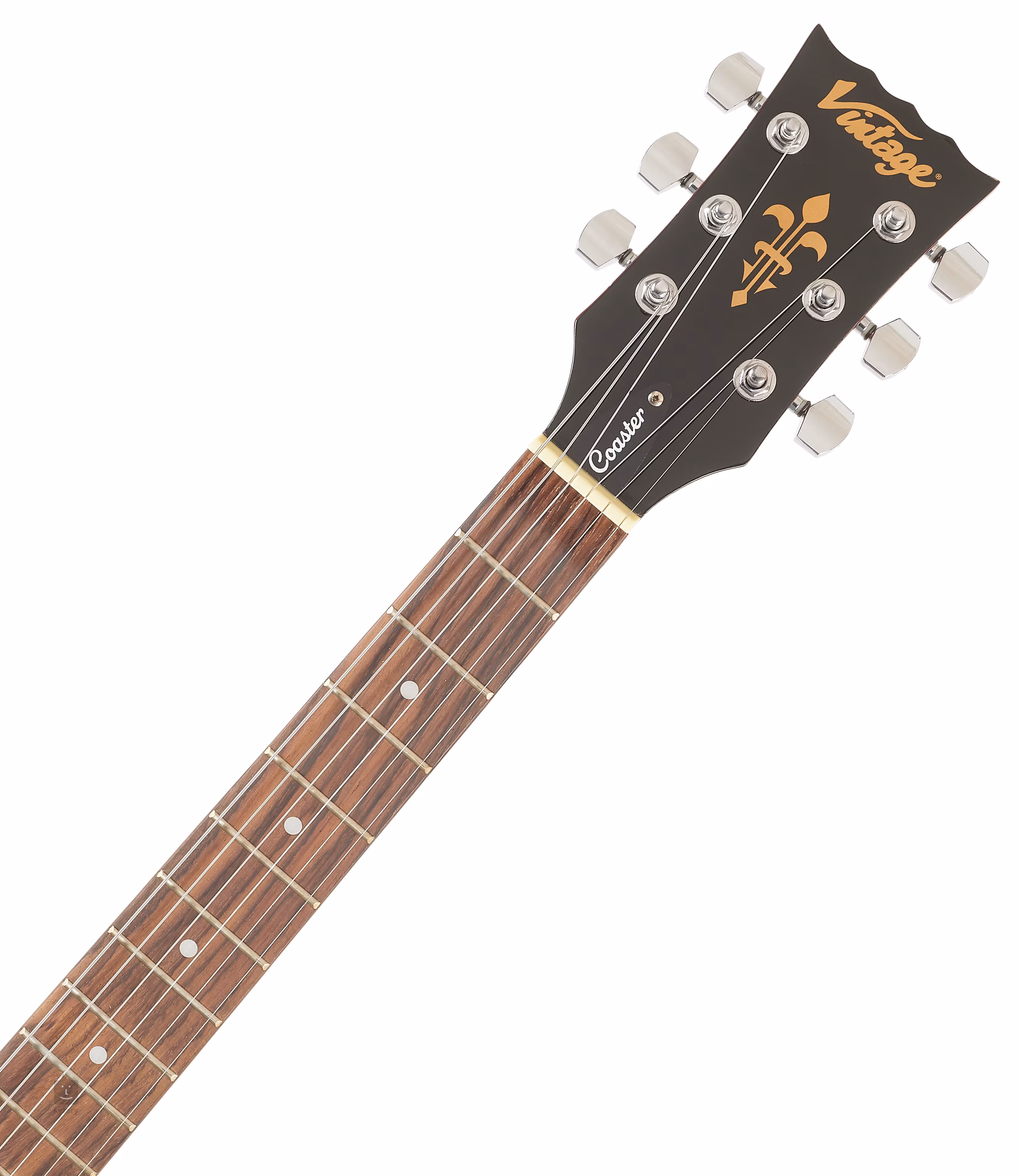 Vintage V10 Coaster Series Wine Red je elektrická gitara s jedným výrezom v obľúbenom tvare "elpe". Telo nástroja je vyrobené z lipy. K javorovému krku je prilepený palisandrový hmatník s dvadsiatimi dvoma pražcami.