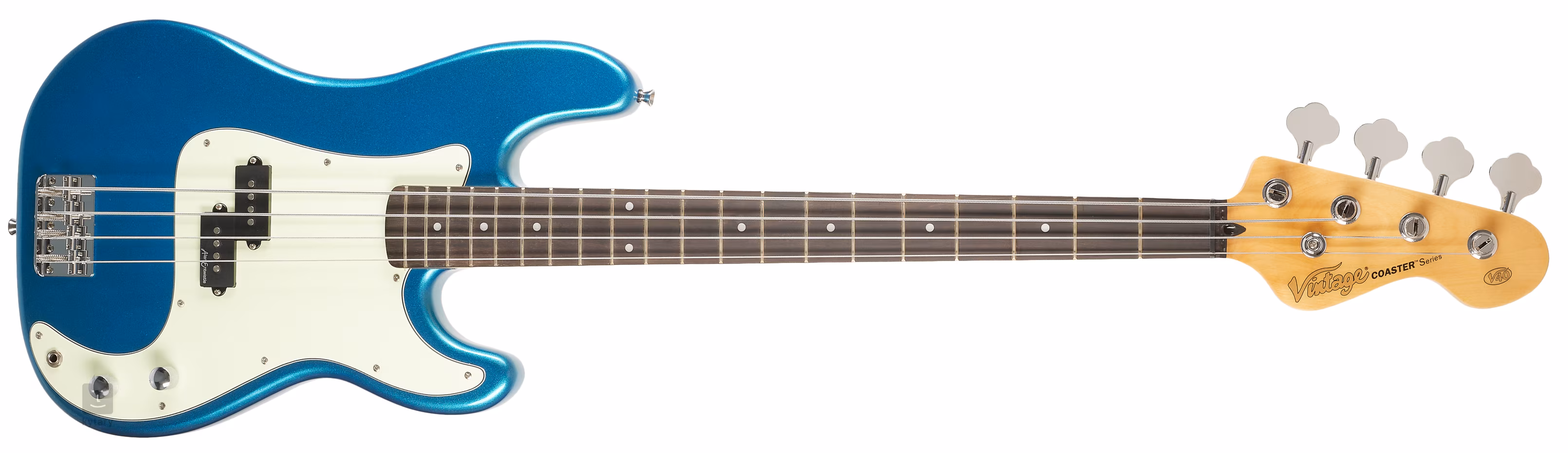 Vintage Coaster V40 je elektrická basgitara s pôsobivým dizajnom a špičkovými funkciami, ktorá poteší začiatočníkov aj skúsenejších hráčov. Vďaka telu s dvojitým výrezom, 3-vrstvovému pickguardu a chrómovému hardvéru pôsobí tento nástroj elegantne a moderne. Rýchly palisandrový hmatník s 20 pražcami, skrutkovaný javorový krk a telo z paulovnie ponúkajú skvelú rovnováhu výšok, stredov a basov, ktoré sú prenášané s výnimočnou čistotou.