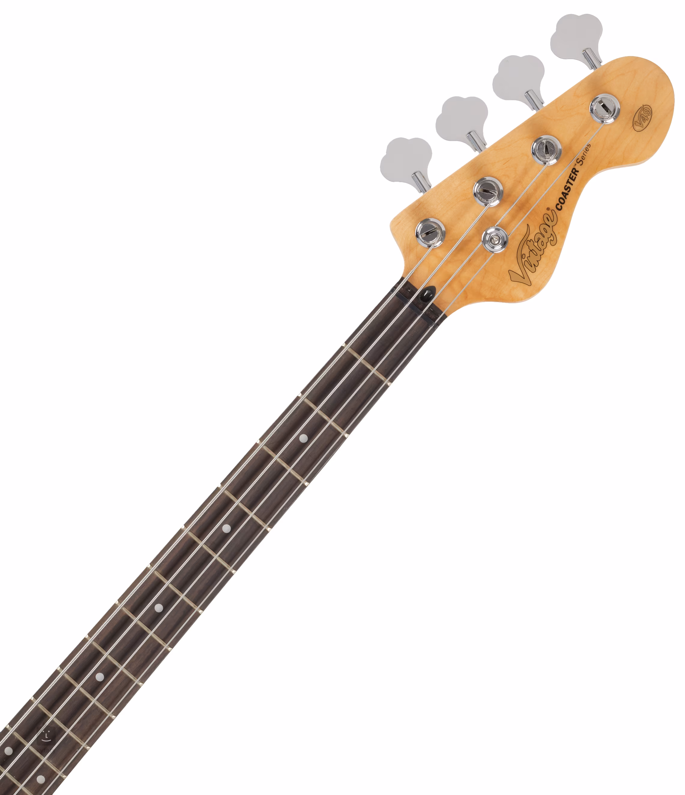 Vintage Coaster V49 je elektrická basgitara, ktorá stelesňuje tradičné remeselné spracovanie, pohodlie pri hraní a všestrannosť zvuku, ktorými si značka Vintage získala priazeň hudobníkov a médií po celom svete. So štýlovou povrchovou úpravou, 3-vrstvovým pickguardom, chrómovým hardvérom a čiernymi ovládacími prvkami je V49 príkladom nadčasového dizajnu. Je vybavená masívnym telom z paulovnie, skrutkovaným javorovým krkom a palisandrovým hmatníkom s 20 pražcami.