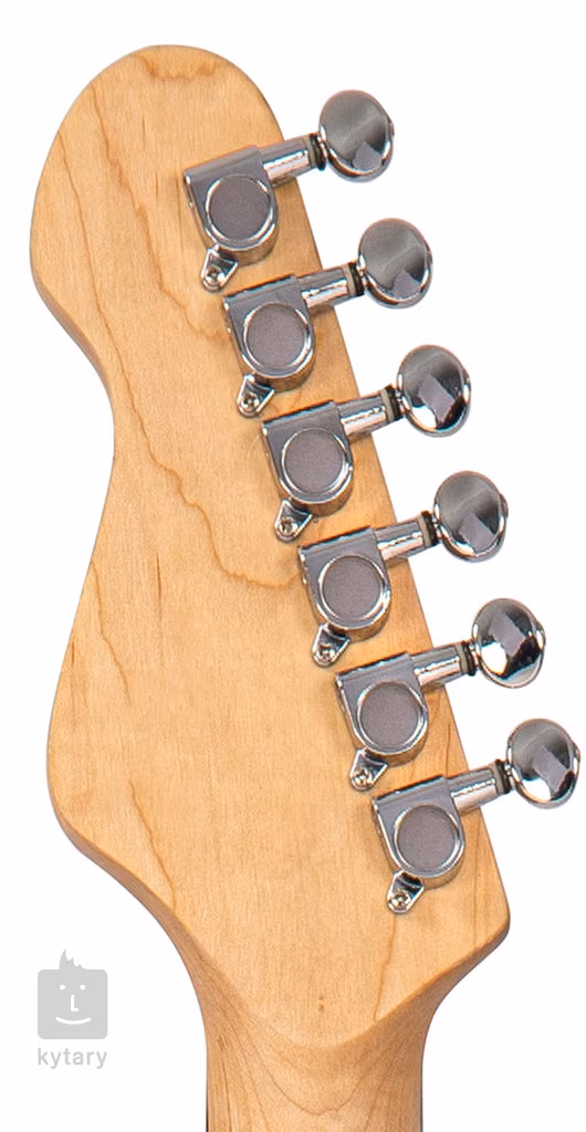 Struny sú ukotvené v chrómových liatych mechanikách a vibrato s nastaviteľnými sedlami. Štýl je podčiarknutý tradičnými prvkami v podobe trojvrstvového pickguardu a pozičných bodiek na hmatníku.