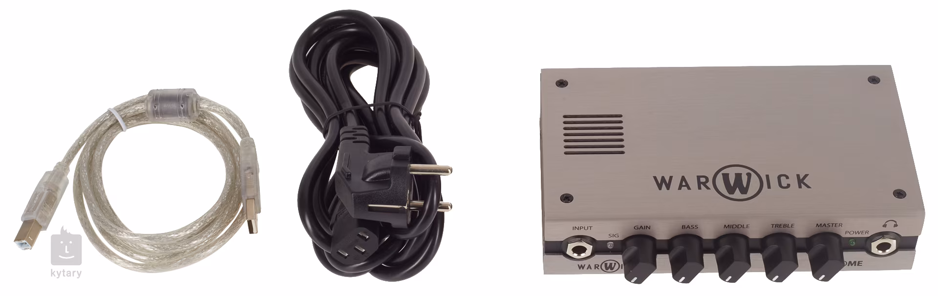 K dispozícii je trojpásmový ekvalizér, ktorým môžete regulovať až +/- 15 dB v jednotlivých pásmach, čím zosilňovač získava širokú zvukovú paletu. Na prednej strane nájdete okrem potenciometrov gain a master aj indikátor špičkového signálu alebo výstup na slúchadlá, takže môžete nerušene cvičiť aj neskoro večer. Nástrojový vstup má odpor až 10 Mohmov, čo poskytuje ideálnu citlivosť pre pasívne snímače.