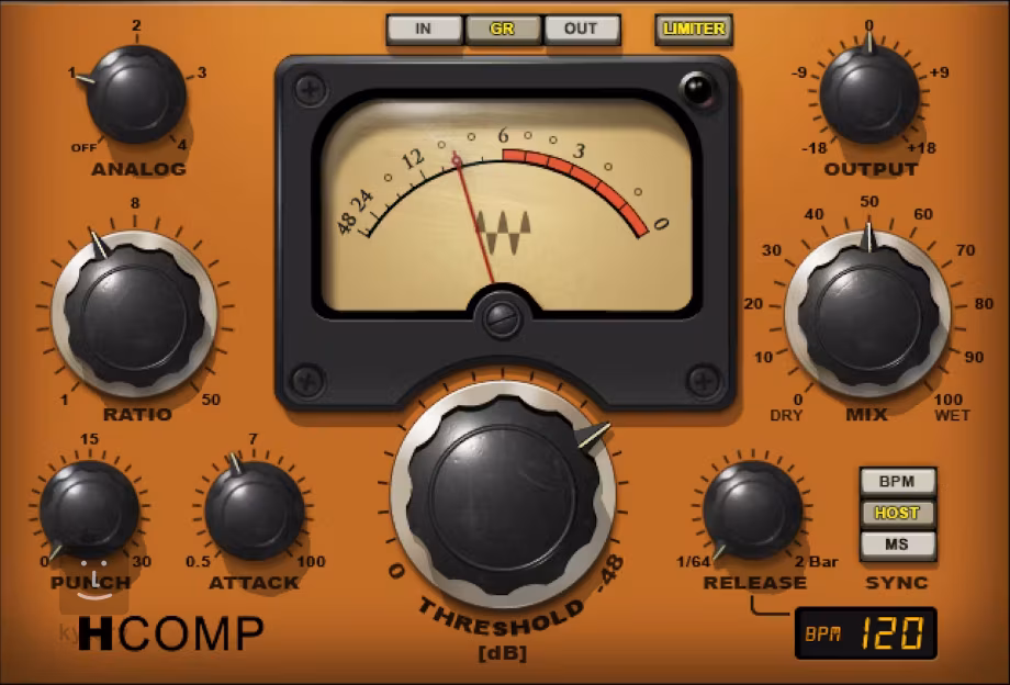 Hybridný kompresor H-Comp od spoločnosti Waves je dynamický procesor, ktorý kombinuje modernú kompresnú technológiu s charakteristickým analógovým zvukom. Je vybavený štyrmi analógovými znakmi na spracovanie mokrého a suchého signálu, synchronizáciou uvoľňovania s hostiteľským BPM, integrovaným obmedzovaním špičiek signálu a ovládaním pre paralelnú kompresiu. Tento zásuvný modul inšpirovaný klasickými modelmi kompresorov, ako sú SSL a API, poskytuje vynikajúcu flexibilitu a ovládateľnosť pri mixovaní.