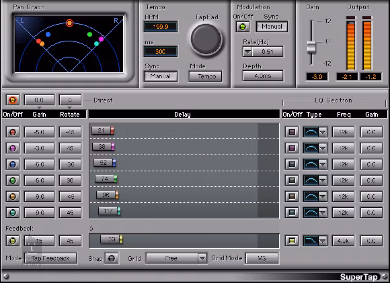 SuperTap poskytuje používateľom možnosť prispôsobiť tón jednotlivých oneskorení, čo umožňuje vytvárať čokoľvek od jednoduchých efektov slapback echo až po komplexné polyrytmické vzory. Vďaka svojej flexibilite a schopnosti presne ovládať opakovanie oneskorenia je tento plugin obľúbenou voľbou na mixovanie vokálov a iných nástrojov.