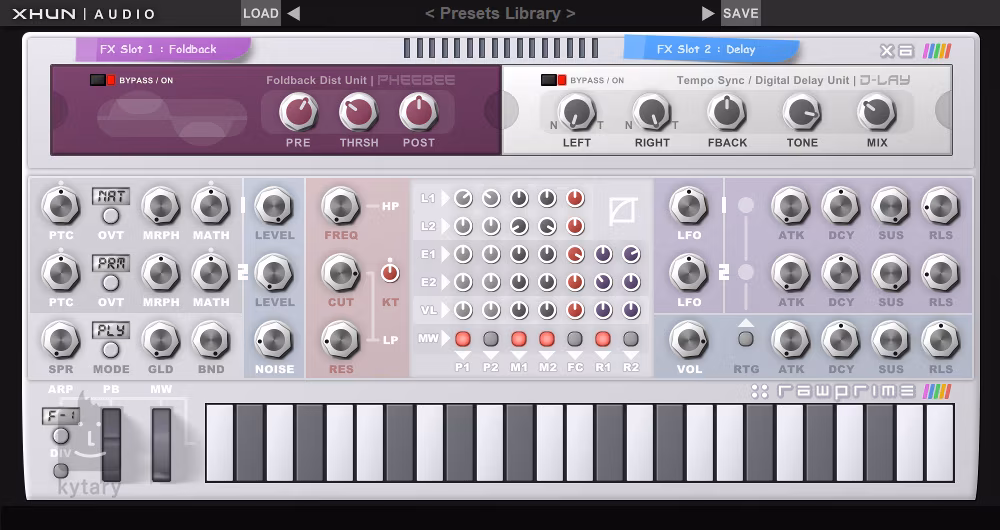 Xhun Audio RawPrime je fyzicky modelovaný hybridný syntetizátor, ktorý emuluje topológiu špecifických digitálnych a analógových elektronických komponentov z telekomunikačného priemyslu 70. až 80. rokov minulého storočia.