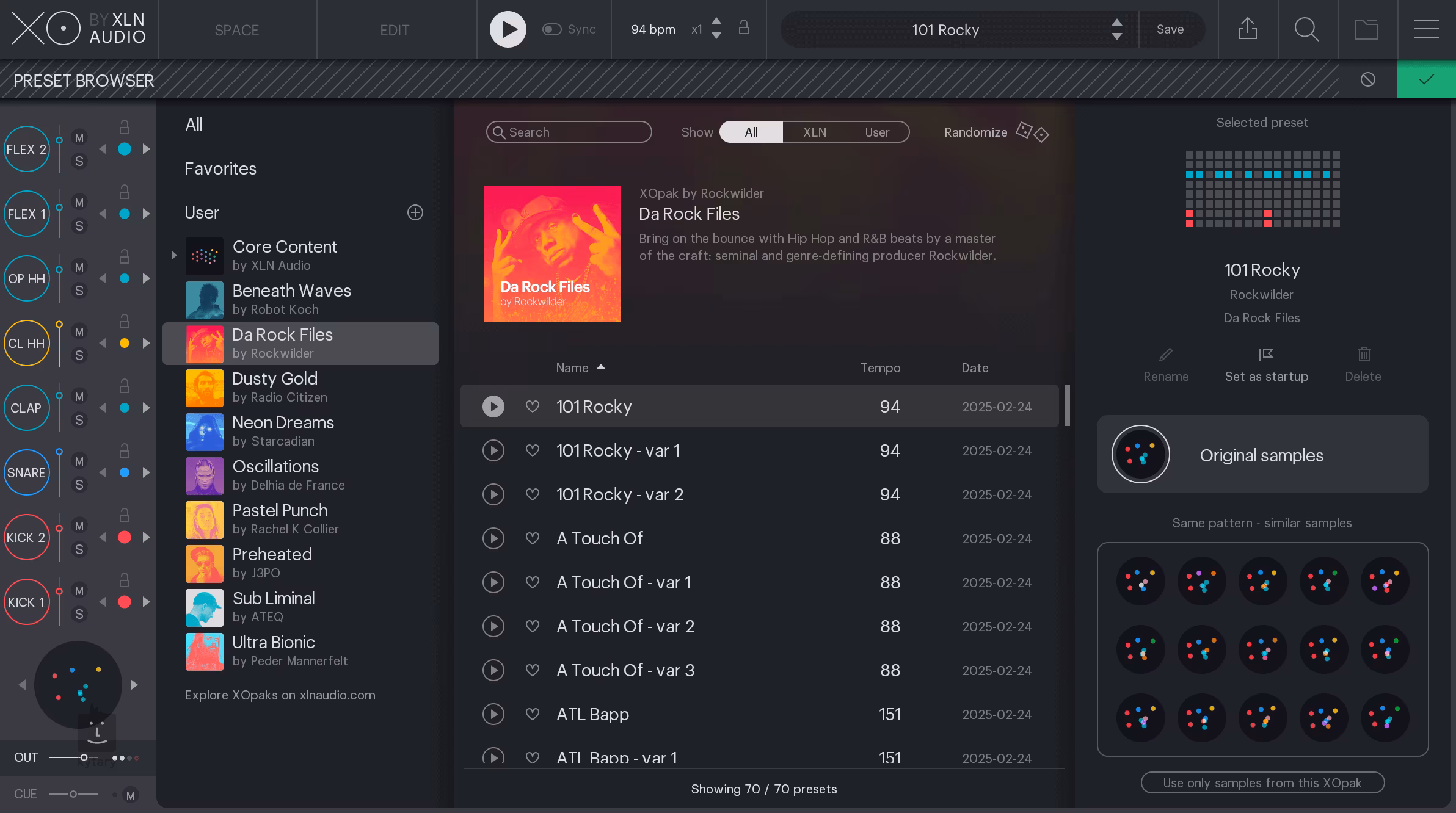 XOpak: Da Rock Files by Rockwilder od XNL Audio je rozširujúci balík pre softvérový nástroj XO, ktorý oživuje autentickú podstatu hip-hopu a R&B z konca 90. rokov. Táto edícia vznikla pod vedením legendárneho producenta Rockwildera, ktorý stojí za hitmi ako "Da Rockwilder" (Method Man & Redman) a "Lady Marmalade" z filmu Moulin Rouge.
