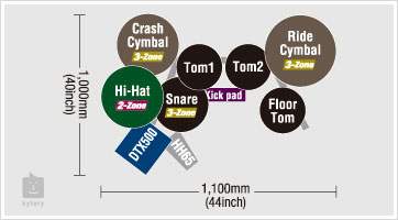 Činely DTX540K nabízejí naši vyspělou technologii 3-zónových činelových padů, které nabízejí různé zvuky, pokud hrajete na bell, tělo činelu nebo na hranu činelu.