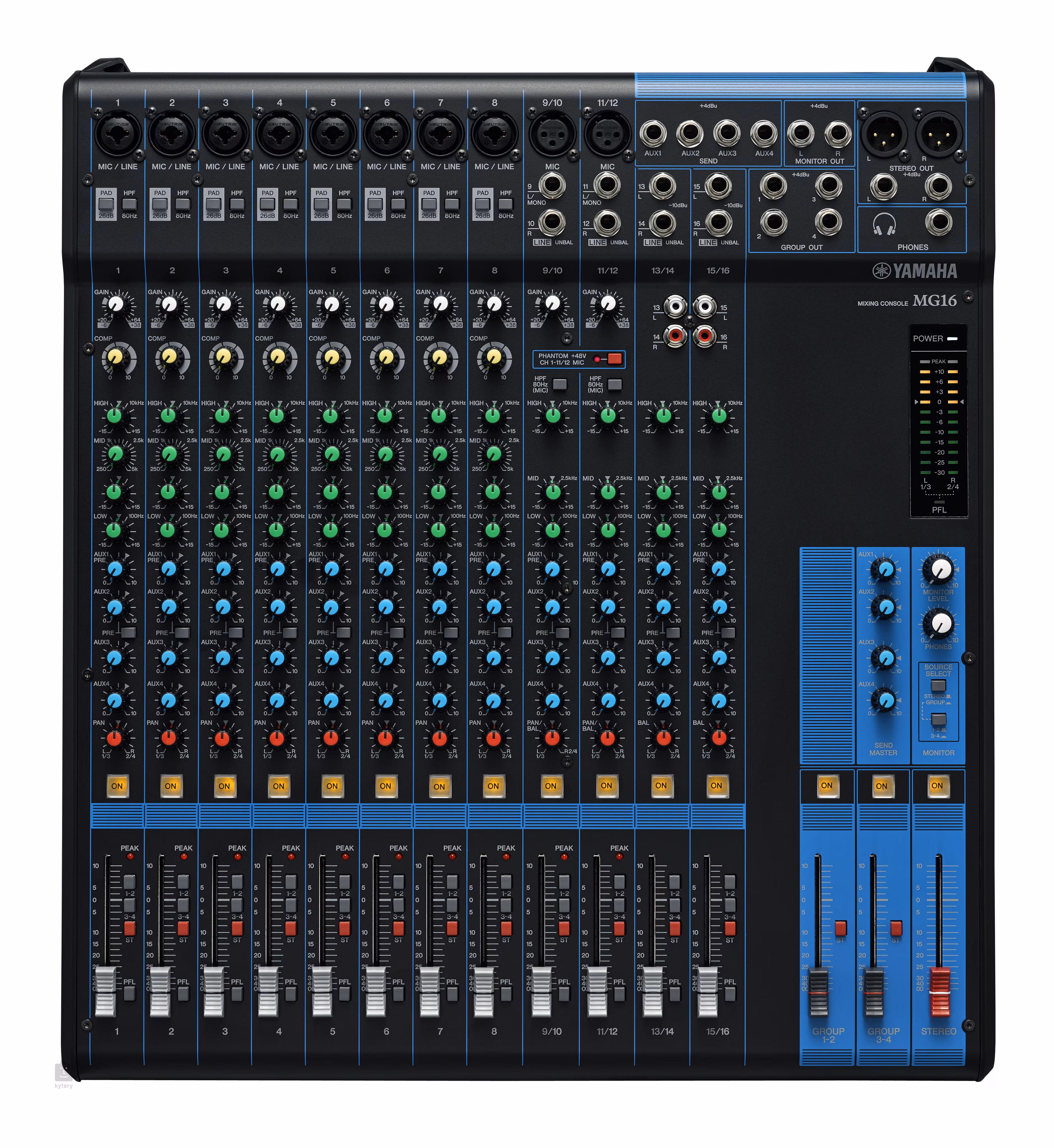 Analógový mixážny pult so šestnástimi kanálmi. K dispozícii je desať kombinovaných mikrofónových vstupov 6,3 mm Jack/XLR s fantómovým napájaním, ďalšie štyri linkové stereo vstupy, 4x výstup Aux Send, Monitor Out a stereo výstup s konektormi XLR a Jack, doplnené o ďalšie štyri skupinové zbernice. Absolútne čistý zvuk zabezpečujú mikrofónové predzosilňovače D-PRE s Darlingtonovým obvodom, zatiaľ čo dostatočnú zvukovú flexibilitu ponúkajú prepínače PAD a High Pass Filter na všetkých mono vstupoch, ako aj trojpásmový ekvalizér a kompresor na mikrofónových vstupoch. Samozrejmosťou je aj slúchadlový výstup na okamžitý monitoring.