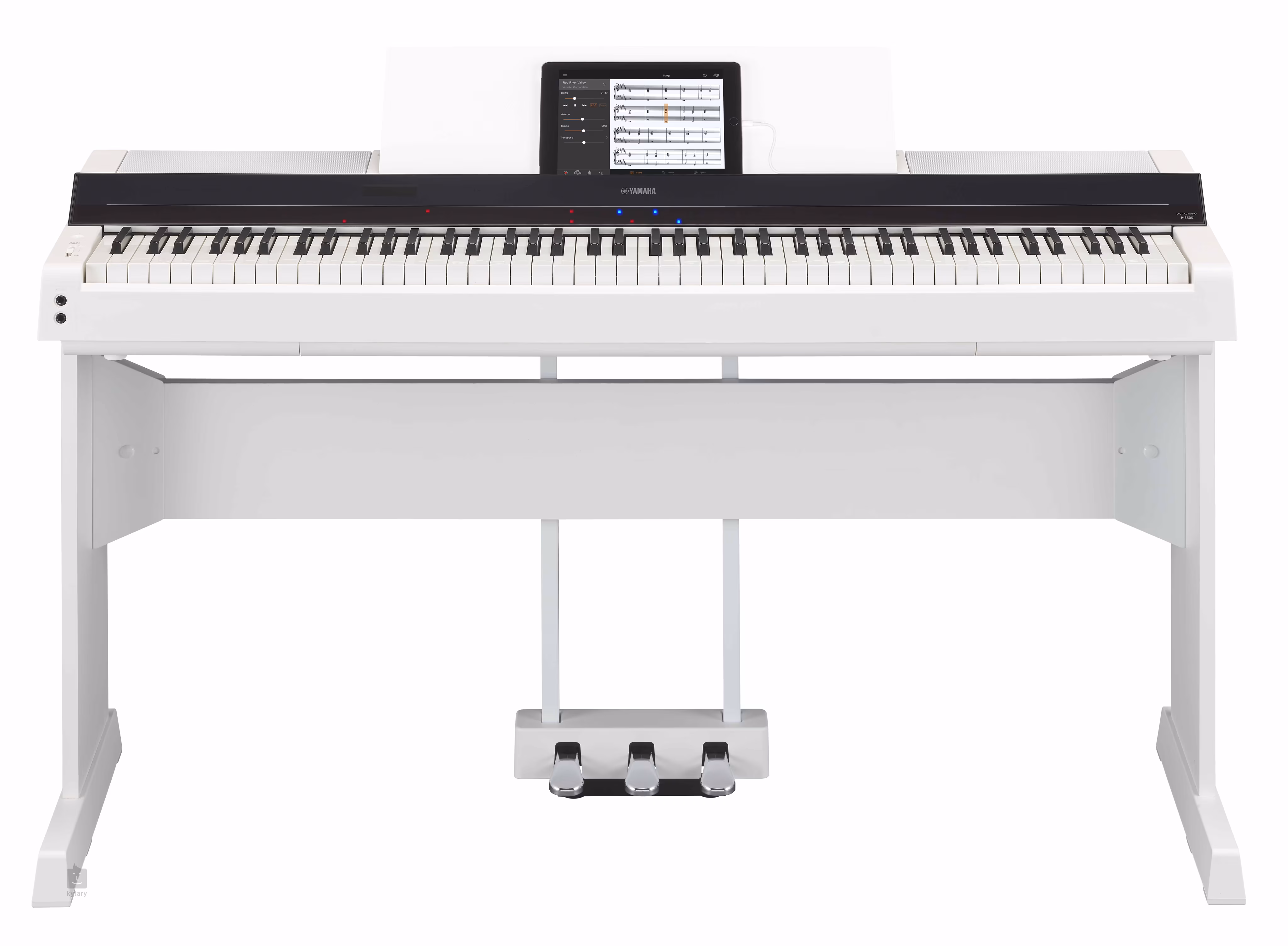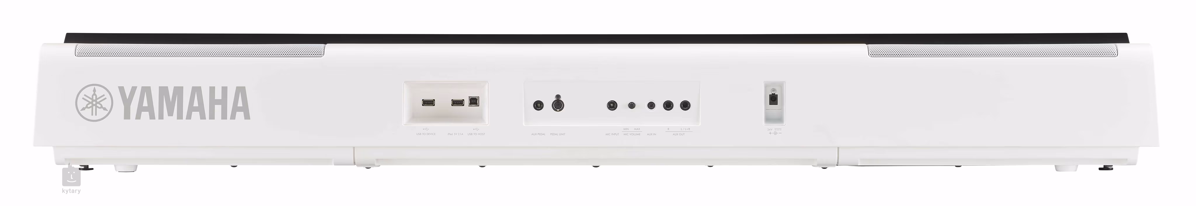 Obsah balenia a odporúčanépríslušenstvo Okrem samotného klavíra obsahuje balenie štýlový stojan na noty, na ktorý sa zmestí aj veľký tablet, sustain pedál, USB káble a napájací adaptér. Ak chcete tradičné ovládanie tromi pedálmi, odporúčame zakúpiť stojan Yamaha L-300 a pedálovú dosku LP-1 alebo samostatnú jednotku s tromi pedálmi FC35. Voliteľné príslušenstvo zahŕňa externý MIDI konvertor MT-BT01 a USB Wi-Fi LAN konvertor UD-WL01.