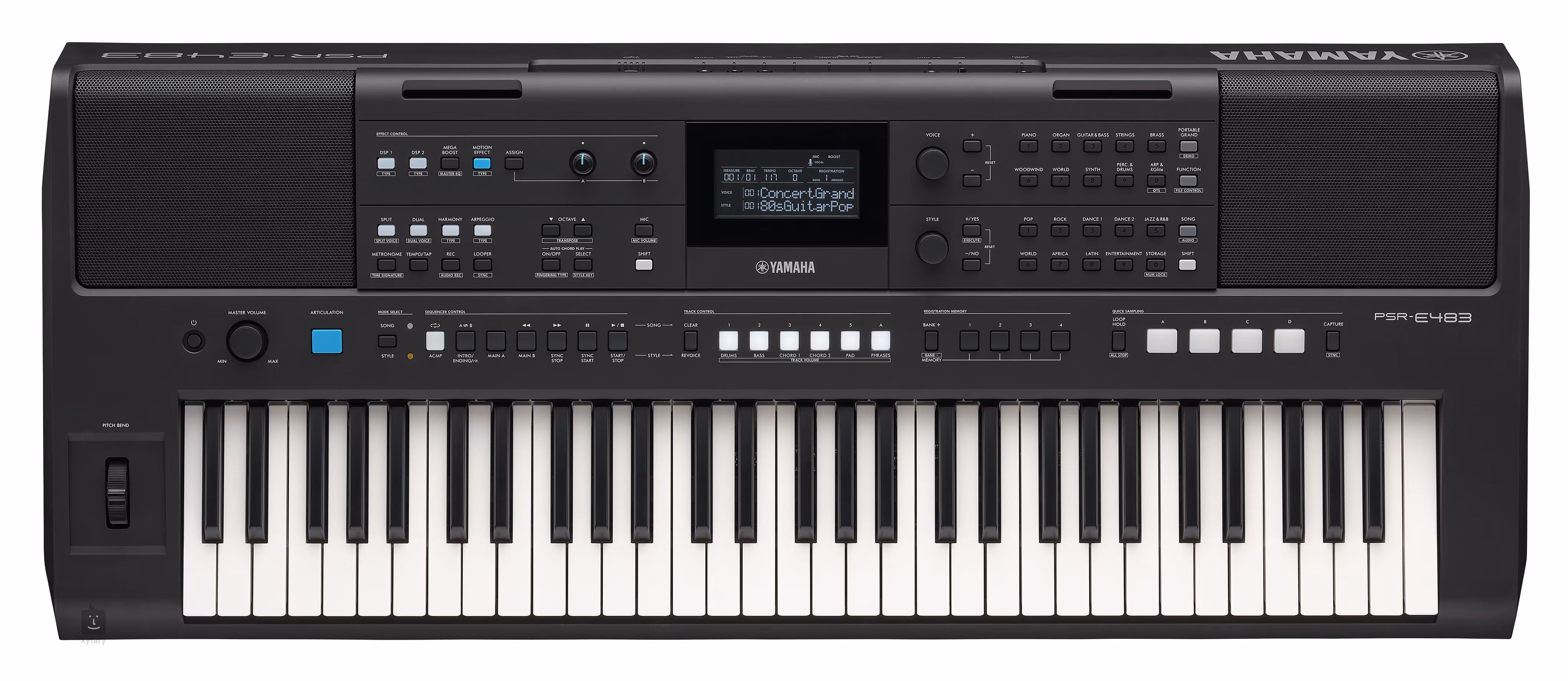 Zvukové funkcie patria medzi hlavné výhody tohto modelu. K dispozícii je 860 zvukov rôznych nástrojov a 345 sprievodných štýlov, ktoré pokrývajú širokú škálu hudobných žánrov, od popu, rocku a jazzu až po elektronickú hudbu, latinské a svetové štýly. Technológia Super Articulation Lite dodáva vybraným nástrojom, ako sú gitary, sláčikové a dychové nástroje, prirodzenejší výraz a artikuláciu. Vstavané efekty DSP vám umožňujú ďalej tvarovať výsledný zvuk, zatiaľ čo 64-tónová polyfónia zaisťuje bohatý tón aj pri použití vrstvených zvukov alebo sprievodov.