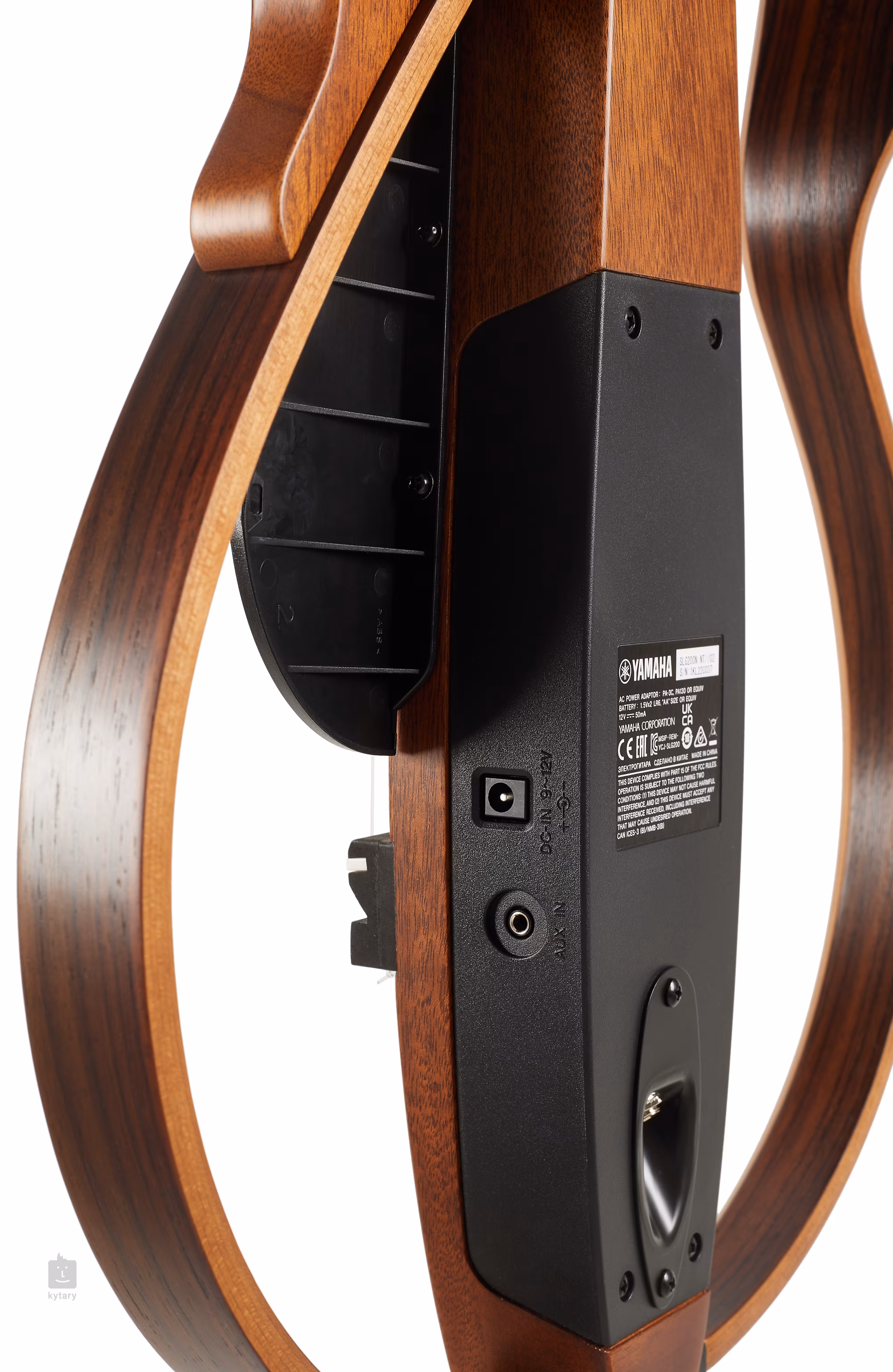 Gitaru SIlent je možné napájať batériami (2x AA) alebo 9-12V DC adaptérom (center positive), napr. Yamaha PA-3C, PA-130 (A, B). Adaptér nie je súčasťou balenia.